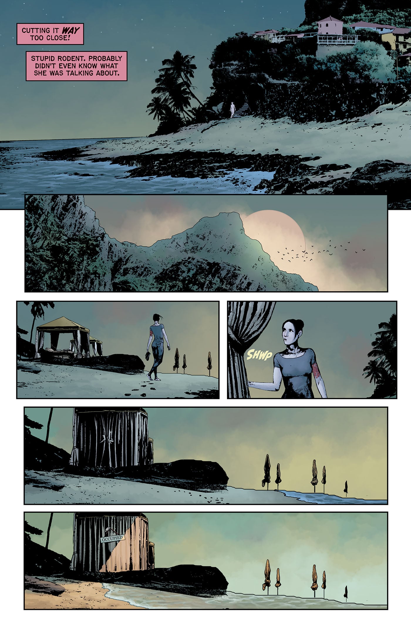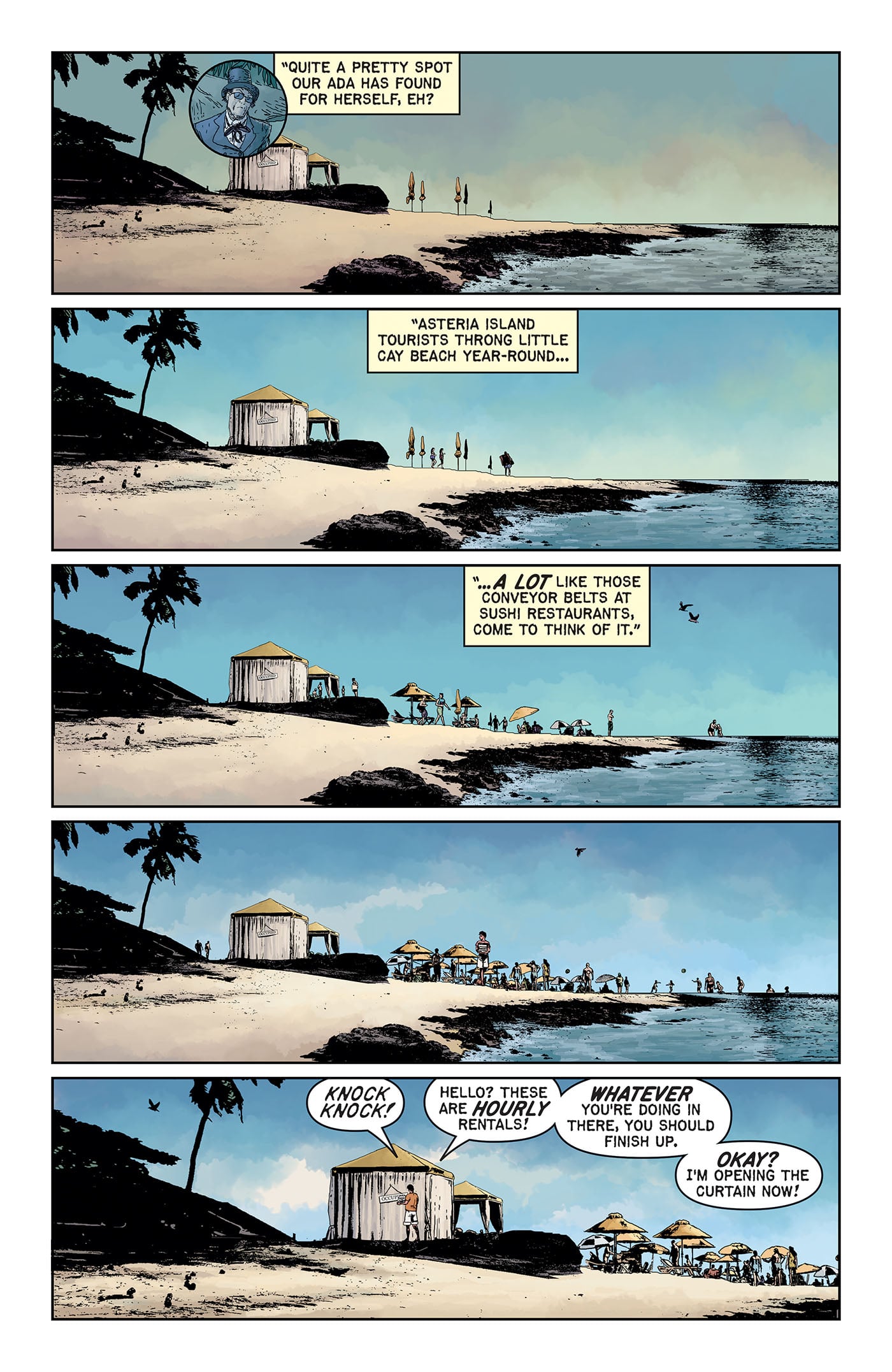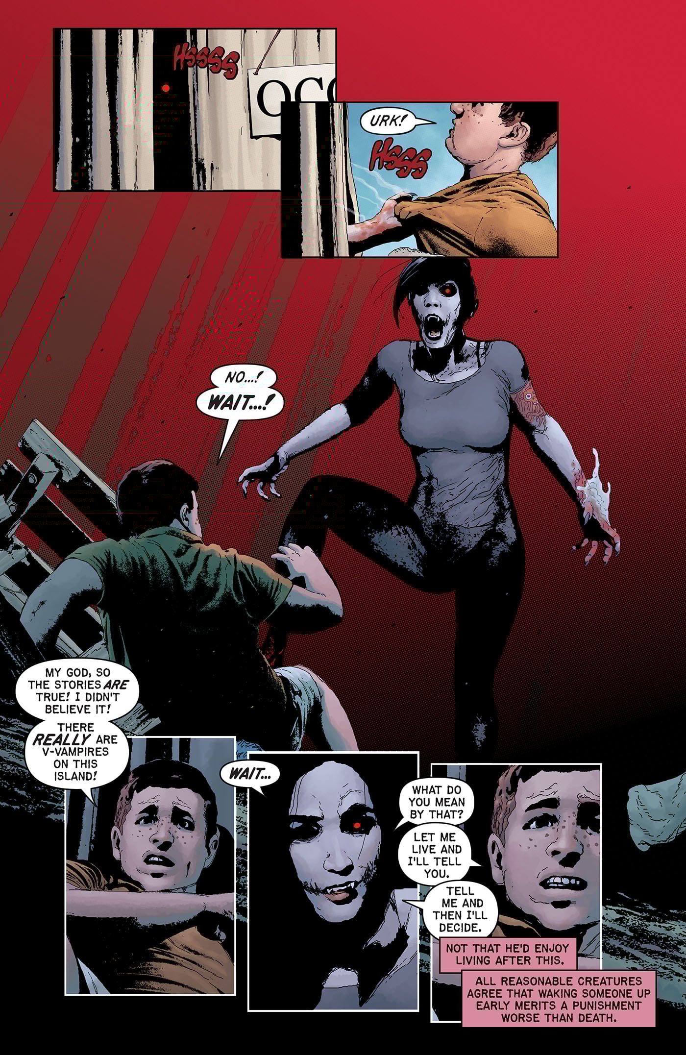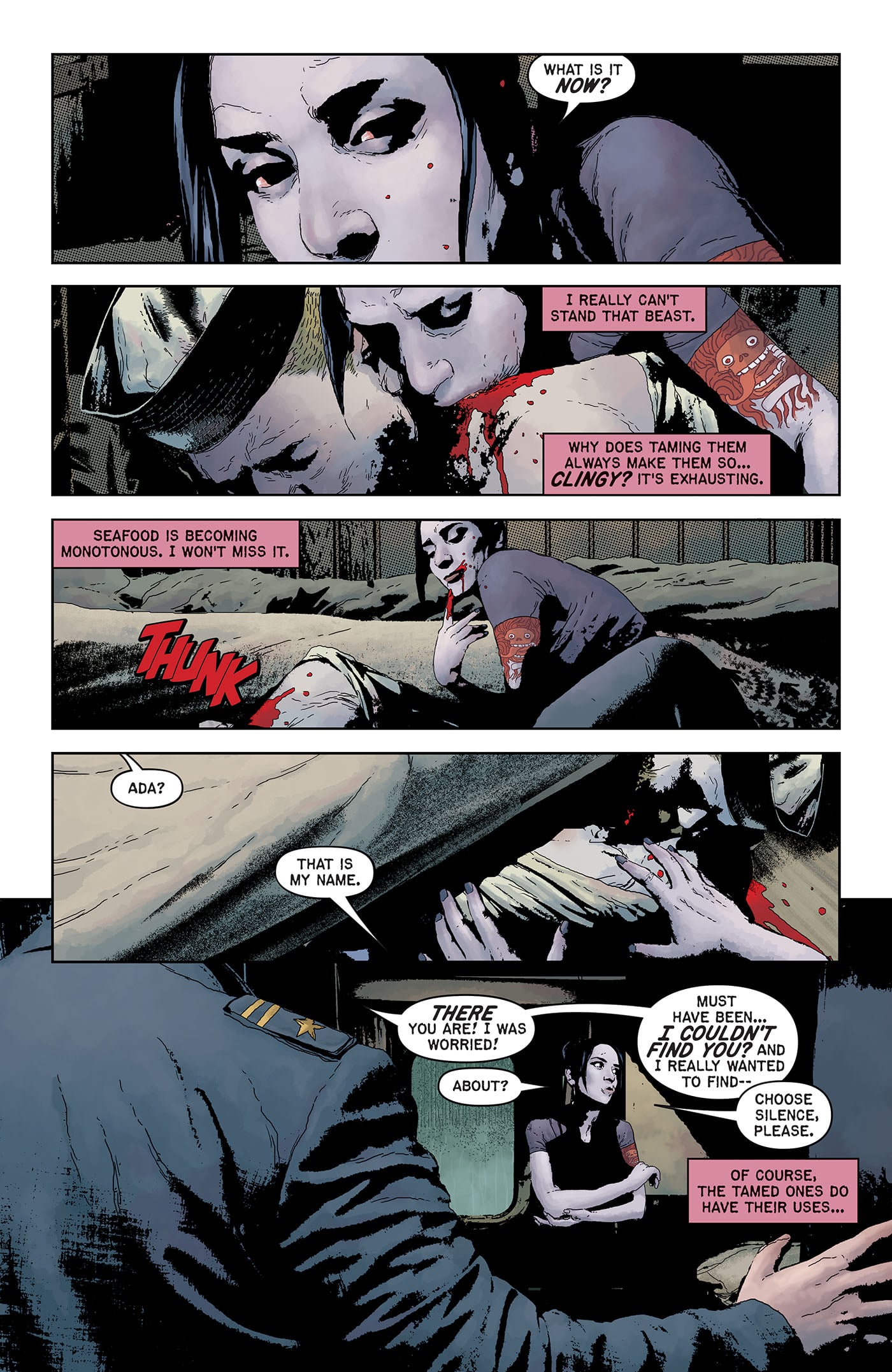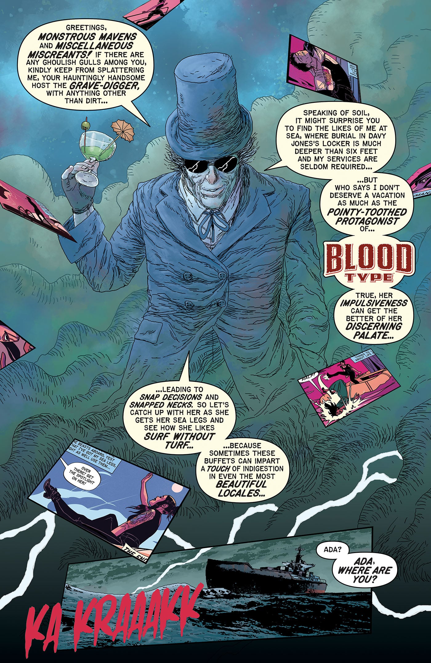 After sinking her teeth into the pages of EC Comics' Epitaphs from the Abyss #3, the immortal vampire Ada brings blood-splattered scares to a sun-soaked tropical resort in the comic book series Blood Type written by Corinna Bechko, illustrated by Andrea Sorrentino, and colored by Dave Stewart.