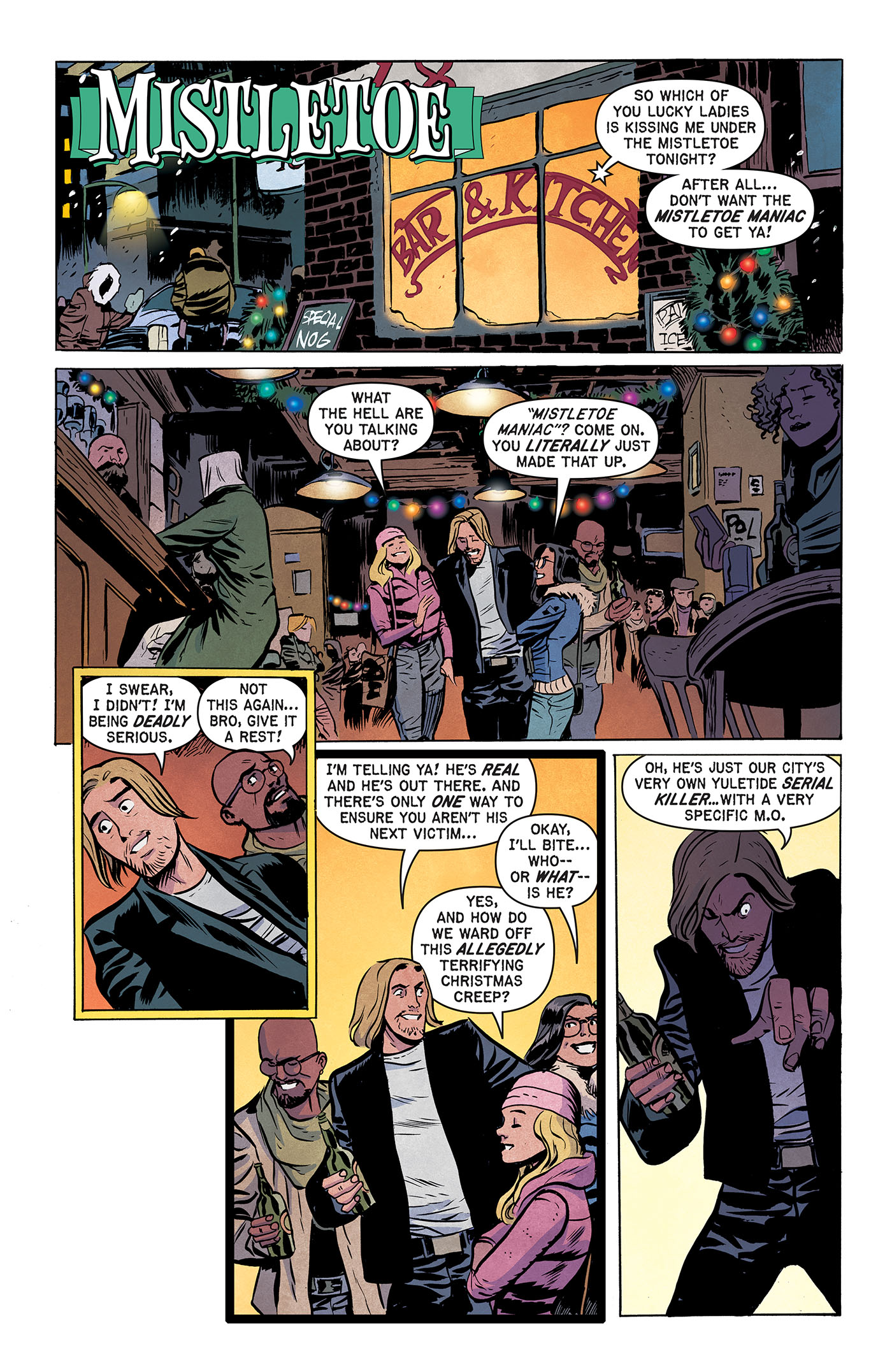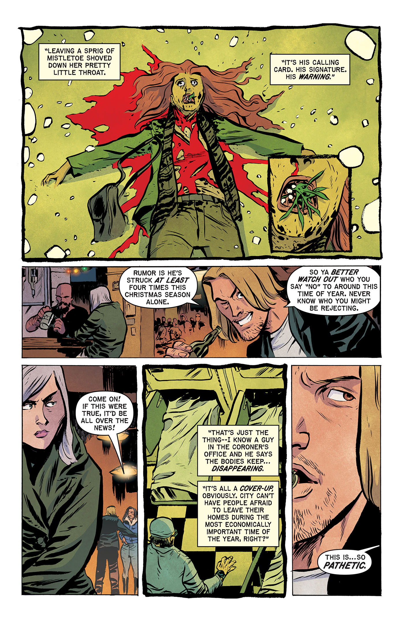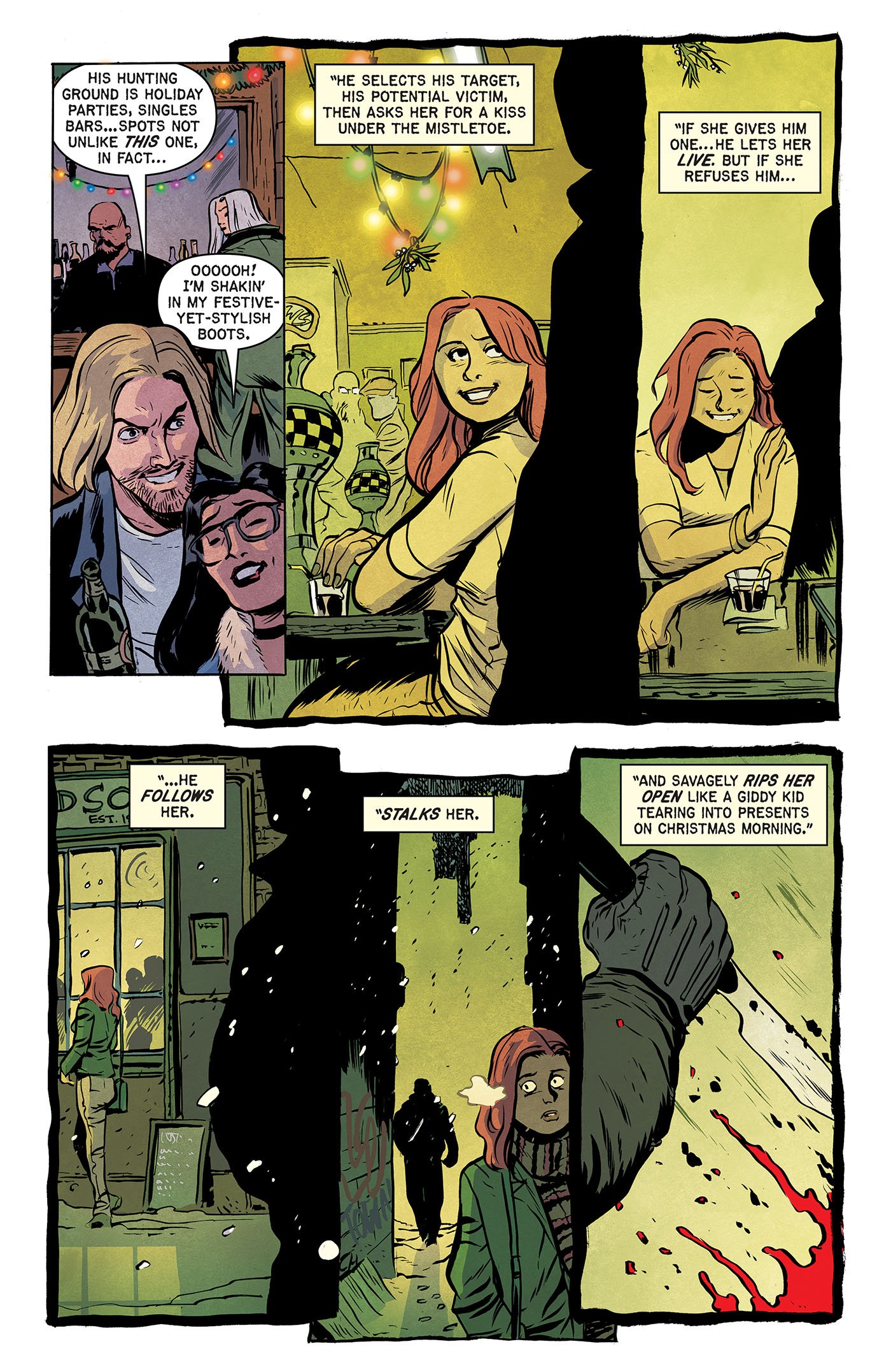 In addition to giving the gift of fearsome folkloric Christmas creatures in the new comic book series Yuletide, writer George Northy (along with artist Dan McDaid and colorist Michelle Madsen) introduces readers to a seasonal serial killer in "Mistletoe," one of several holiday horror stories waiting to be unwrapped in EC Comics' Shiver SuspenStories 2 #1.