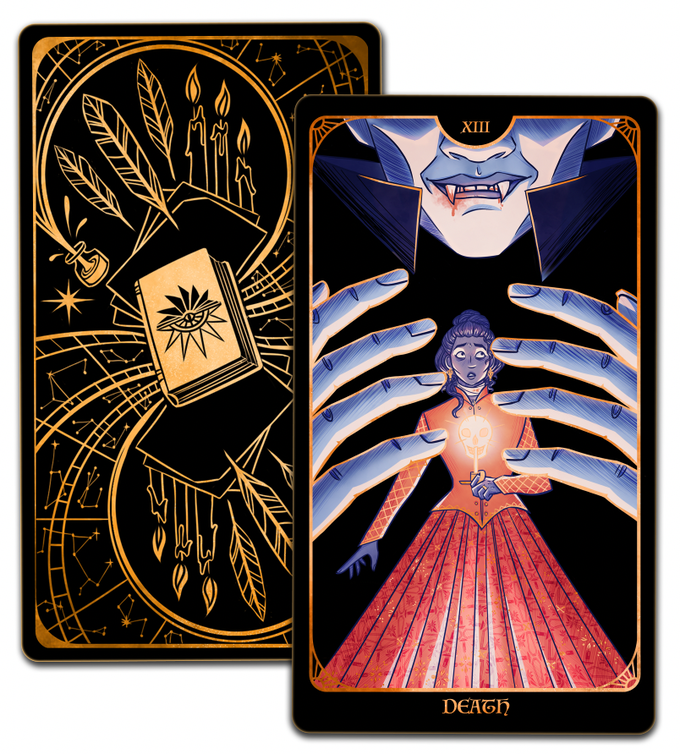 The Literary Tarot deck will feature the complete set of all 78 tarot cards, illustrated with a stunning limited palette and foil accents.