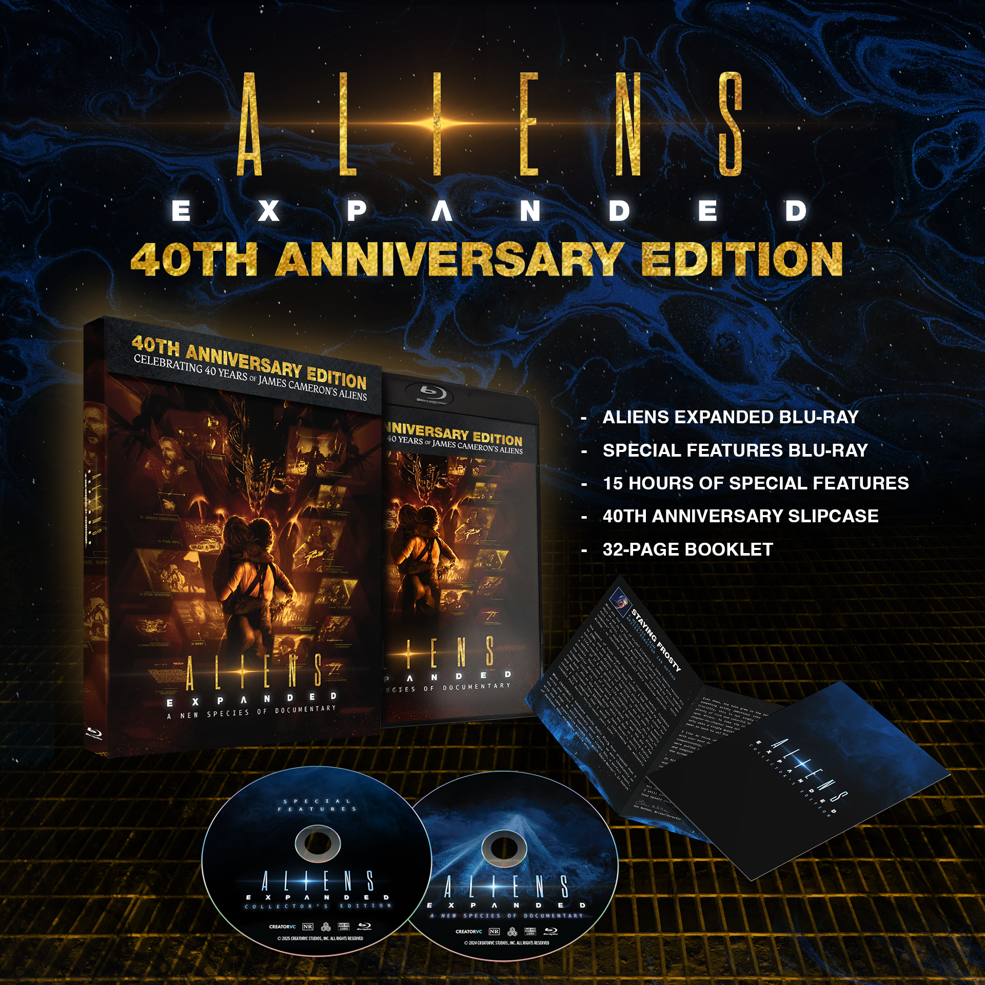 With Alien Day less than two weeks away and the 40th anniversary of Aliens taking place this July, CREATORVC is celebrating by releasing a Special Anniversary Edition of their award-winning documentary, Aliens Expanded. From writer / director Ian Nathan and executive producer Robin Block, the documentary is an excellent deep dive into the making and legacy of James Cameron's groundbreaking sequel. The documentary itself is already packed with cast and creator interviews, including James Cameron and Sigourney Weaver, but this new 2-disc anniversary edition includes even more for die-hard Aliens fans, with over 14 hours of unseen and extended interviews.