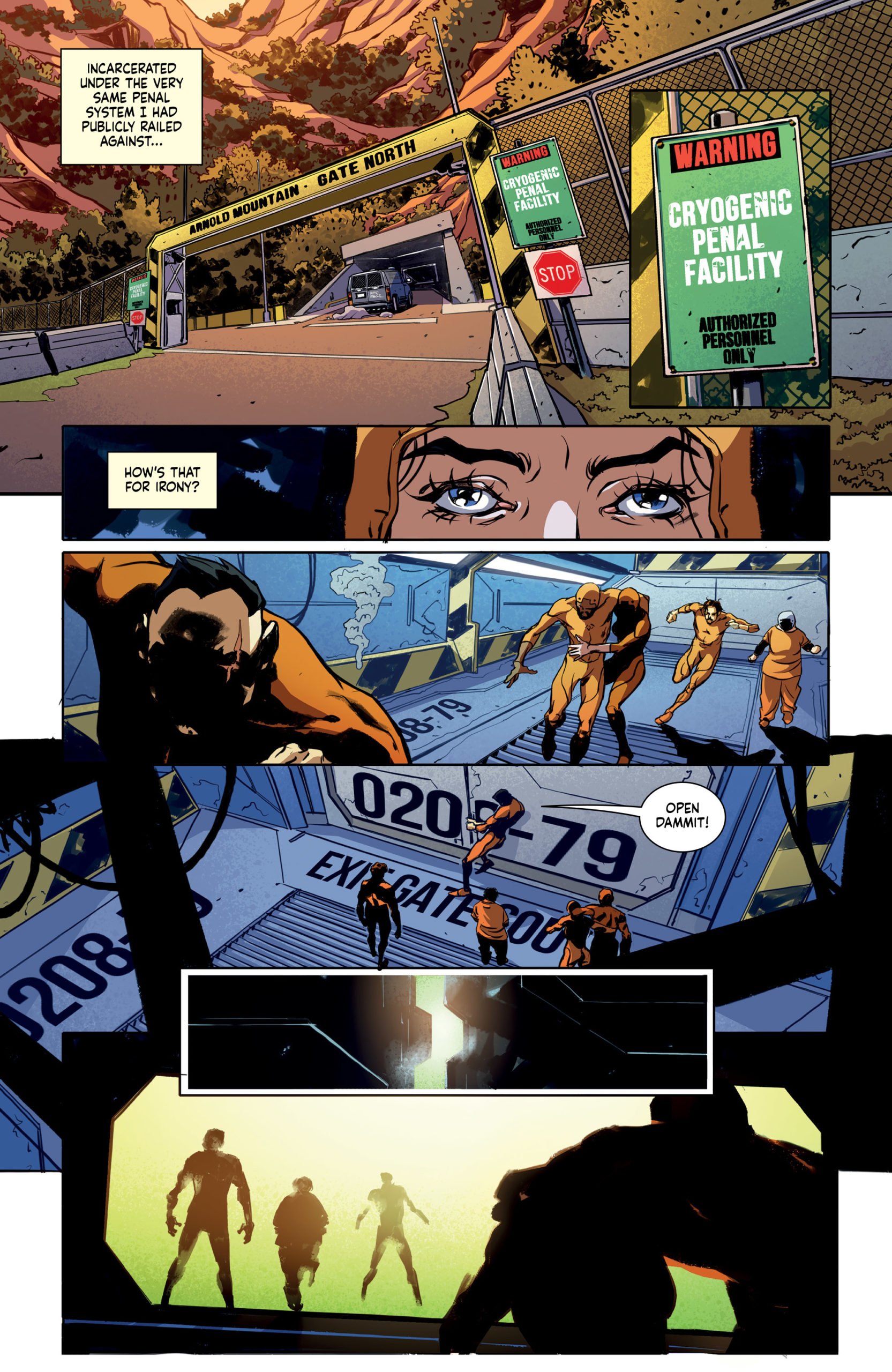 In the graphic novel, two convicts, senator Anna Croft, and her sheriff husband, Ben, are sentenced to twenty-five years to life in a newly constructed cryogenic penal facility for a crime they claim they didn’t commit. Due to a malfunction, however, Anna, Ben and a few others are accidentally released. Once free, the escapees discover that they’ve been frozen for thousands of years, and are the only survivors in a catastrophic future, where prehistoric creatures walk the Earth once more. Given a second chance, the fugitives are forced to create a new society and must decide whether or not to release the rest of the imprisoned criminals in order to survive. Under Anna’s leadership, can these ‘bad seeds’ actually seed a new and better world, or are they doomed to repeat the mistakes of humanity’s checkered history?