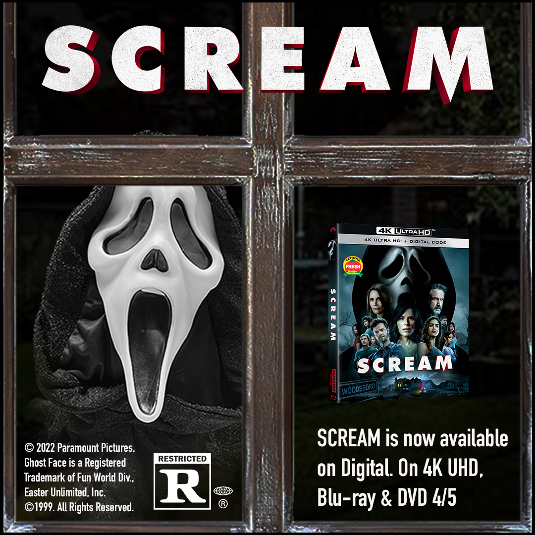 Prize Details: (1) Winner will receive (1) Ghost Face mask and (1) copy of Scream (2022) on 4K UHD