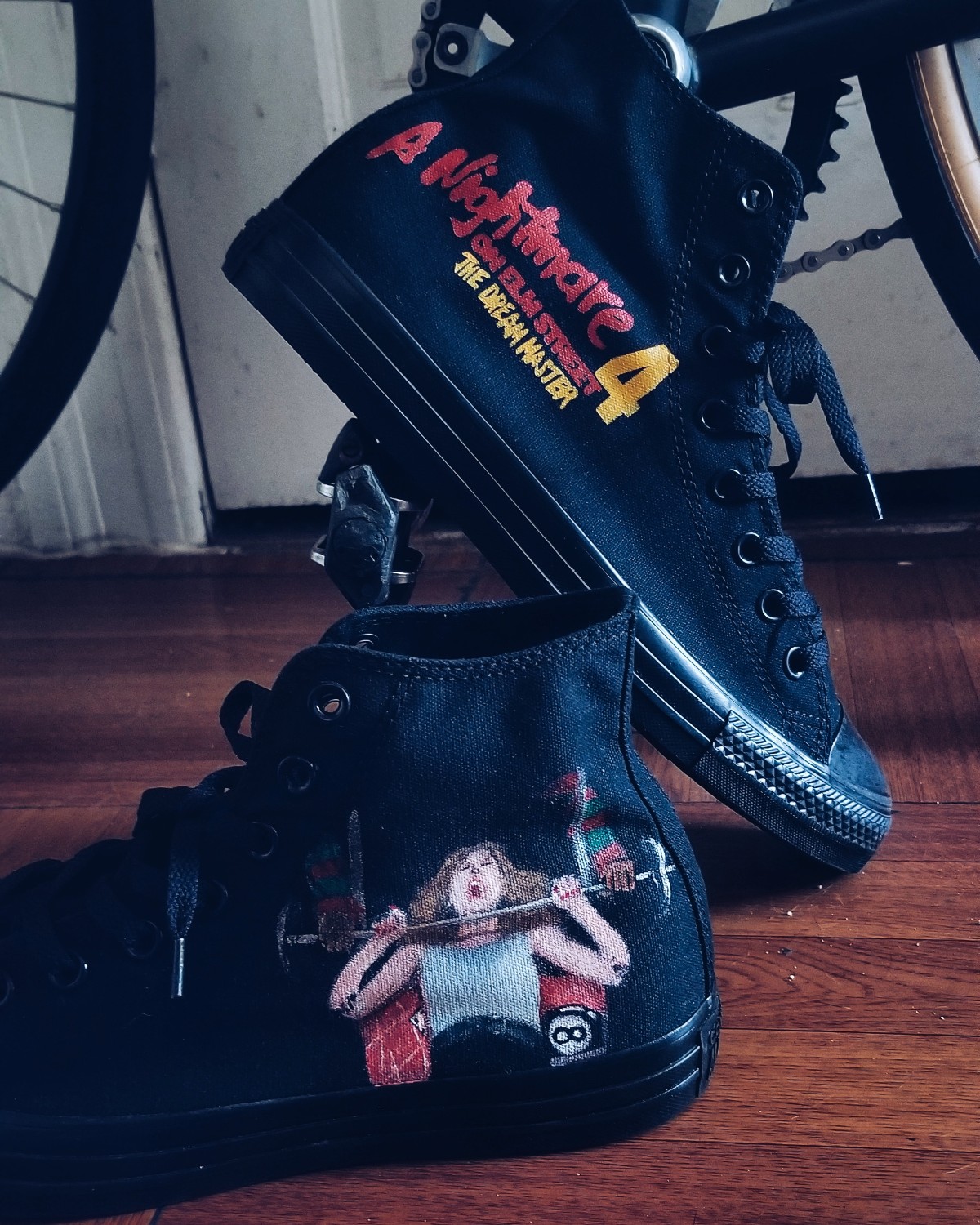 Andrew LaSane: I have a mental list of film/TV-themed pairs that should keep me busy for a long time. Personally, I need to make Howard the Duck and Michael Jackson: Moonwalker customs because those are the two films I watched religiously growing up. The Thing is also pretty high up there. As for dream customer projects, I get excited when someone has an idea for something that they are truly passionate about or, if it’s pop culture related, something that at first I have no idea how to translate it onto a shoe. If someone asks for Martyrs customs though, I may have to retire.