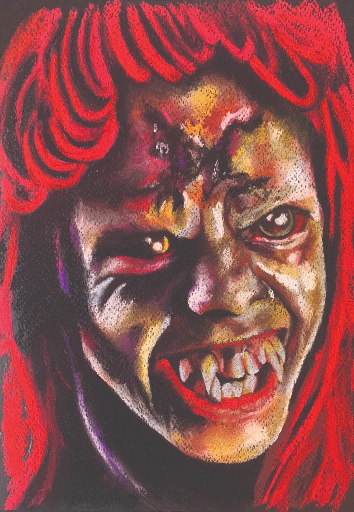 Art encourages us to react with the emotional part of our souls, and if you’re a horror fan, your reaction to my art is completely different to someone who hates horror movies. I’ve had so many comments from people who say they love my use of pastels, but they hate the subject. I love this! I’ve caused a reaction in someone, which I suppose is what art is supposed to do. I could get all deep and meaningful in the theory of artistic aesthetic, the meaning of art and why it’s enjoyable, but at the end of the day I’m really just channeling my love of the genre in the only way I know how. I just hope other horror fans love it, too.