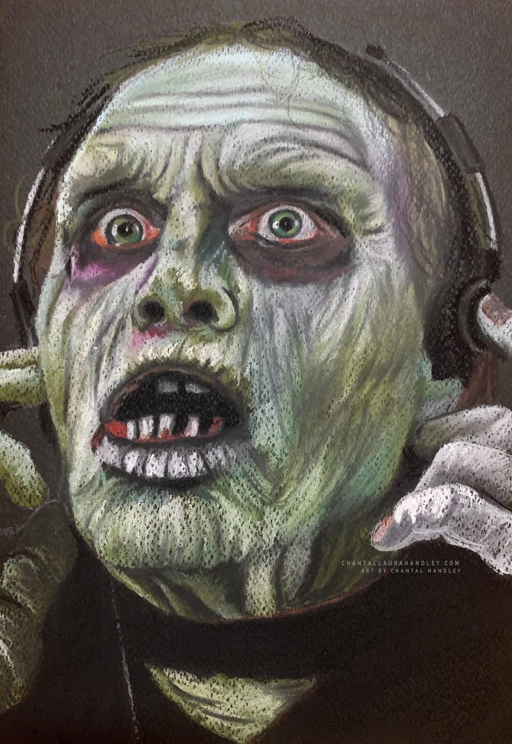 Chantal Handley: During the month of October, I challenged myself to create a portrait a day for 31 Days of Halloween. I usually give myself more time to work on larger portraits, but with this series I set myself a goal and stuck to it. I’m really proud of myself and the artwork I created, and the David Kessler artwork was purchased by David Naughton himself!