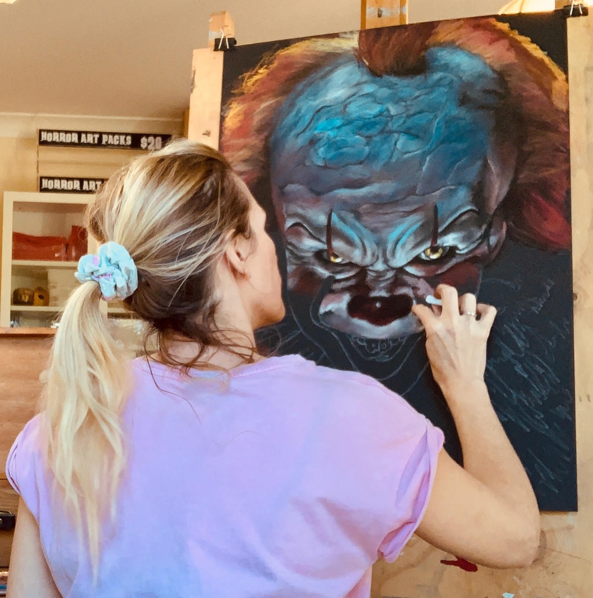 Chantal Handley:I have always loved portraits and there is so much expression, especially in the horror movie genre. A portrait enables me to capture all the emotions of terror and fright in a single artwork. I always feel like I have had a really great conversation with the actor about their film character after I’ve created it, probably because I’ve spent so much time poring over every detail.