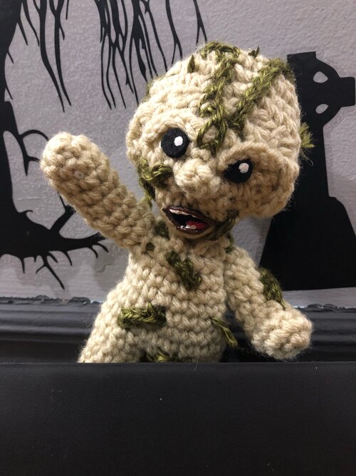 There’s been a few things I’ve been proud of. I’ve done some work for different film releases, like Brightburn and Scary Stories to Tell in the Dark. I recently had my work showcased by Fangoria on their social media platforms. I’ve done work for Jennifer Tilly. I’ve had retweets by numerous celebrities, and I’ve traded crochet yarn babies for autographs with celebrities. I don’t think I could pick just one highlight because every highlight gives me that positive energy that lets me know I’m doing what I was meant to do with my life.