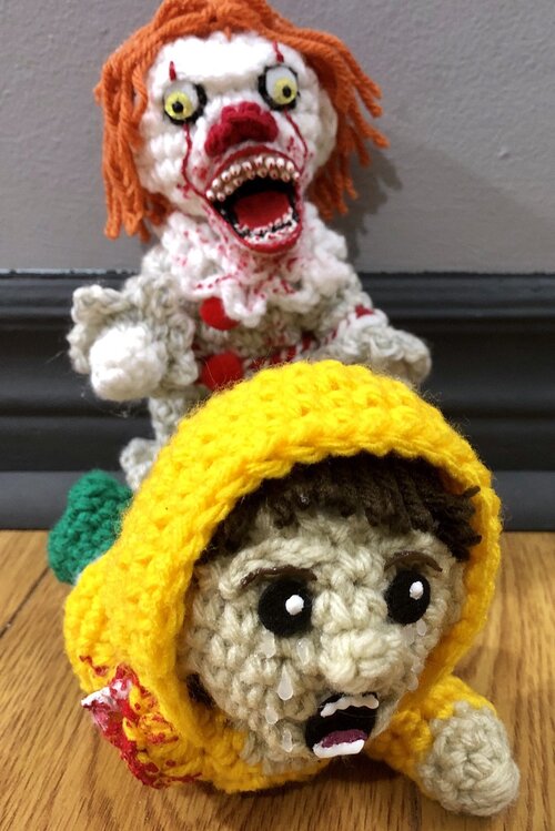 I’m always a fan of my Killer Klown yarn babies. And I once made this gorgeous Q The Winged Serpent that I think about quite often. I also adore my Creepshow crate beast and the witch from House. Those two stay with me in my office, as I couldn’t bear to part with them, especially the House witch. House was one of my first horror films and that witch was one of my first “What the f--- is this insane bullshit?” moments in horror.