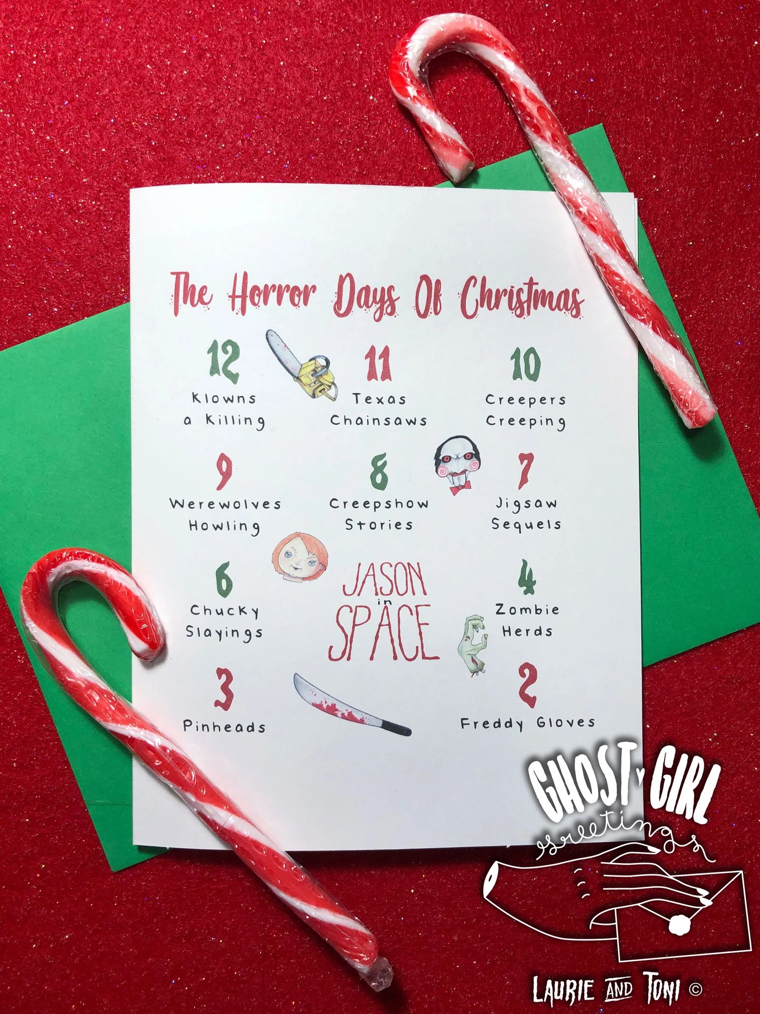 If you’re looking for horror-themed cards to send to your genre-loving friends, or you want to wrap up your gifts this year with a bit of fright-filled flair, you’ll definitely want to check out the Ghost Girl Greetings website, as they have a great assortment of products that will make your holidays a bit more horror-fied this year. To see everything that GGG has to offer, check out their website HERE.