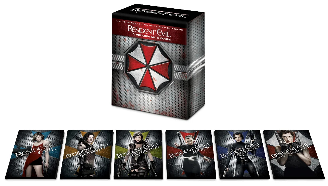 Experience the exhilarating epic journey of Resident Evil from beginning to end, with ALL SIX LIVE ACTION FILMS, together for the first time on 4K Ultra HD in the Resident Evil: Complete Collection! Bring home the must-have Resident Evil collection, with hours of special features and an extended cut of RESIDENT EVIL: APOCALYPSE!