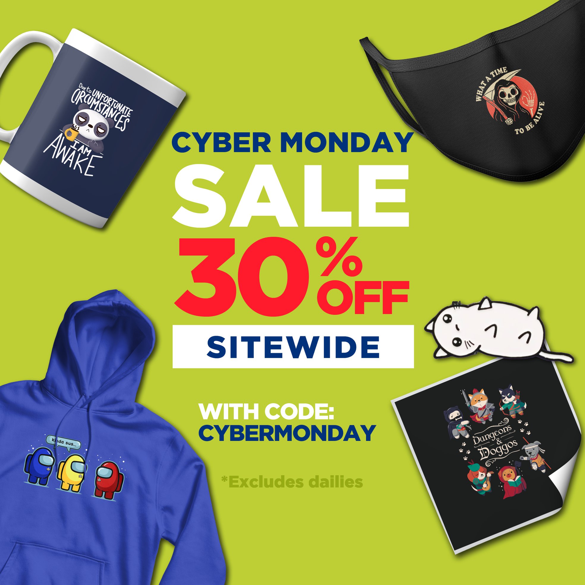 Tee Fury: For Cyber Monday, Tee Fury is offering up a 30% off discount on all products. Just use the code CYBERMONDAY when checking out on their site.