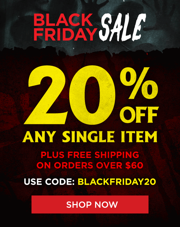 Horror Decor: The fine fiends at Horror Decor are currently are hosting a Black Friday sale where you will find some deep discounts on a variety of their products. HD’s sale is currently underway and runs through Monday, November 27th. To check out everything on sale, please visit: https://www.horrordecor.net/collections/black-friday-sale.