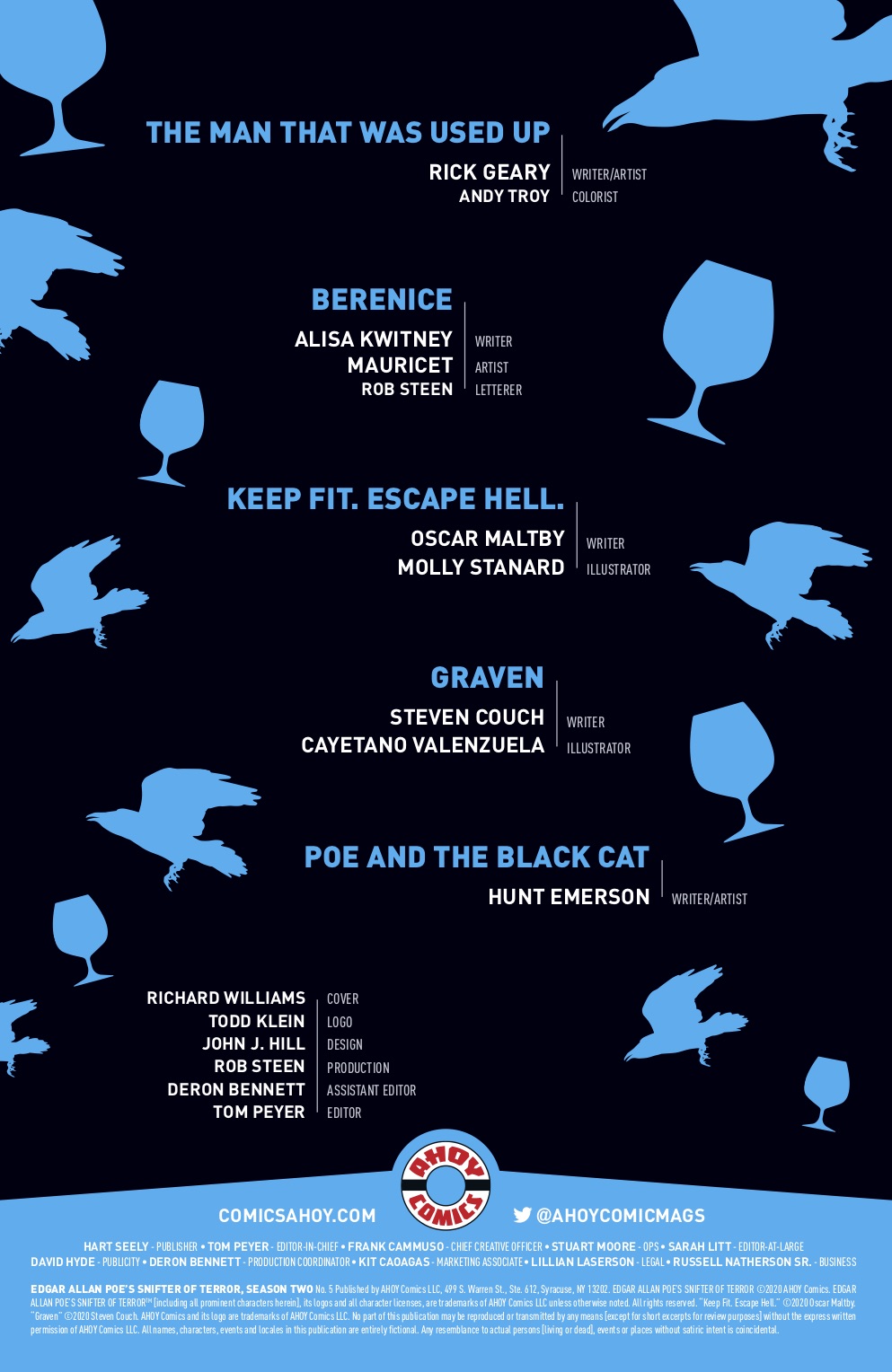 "More monstrous manglings of Poe’s imaginings! “Berenice” is bitten by Alisa Kwitney and Mauricet! Rick Geary dismantles “The Man That Was Used Up!” EXTRA! Another vile episode of “Poe and the Black Cat!” PLUS! Provocative prose and pictures!