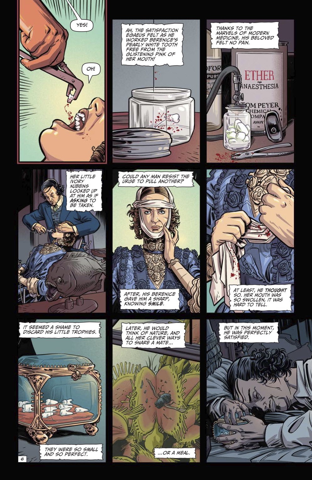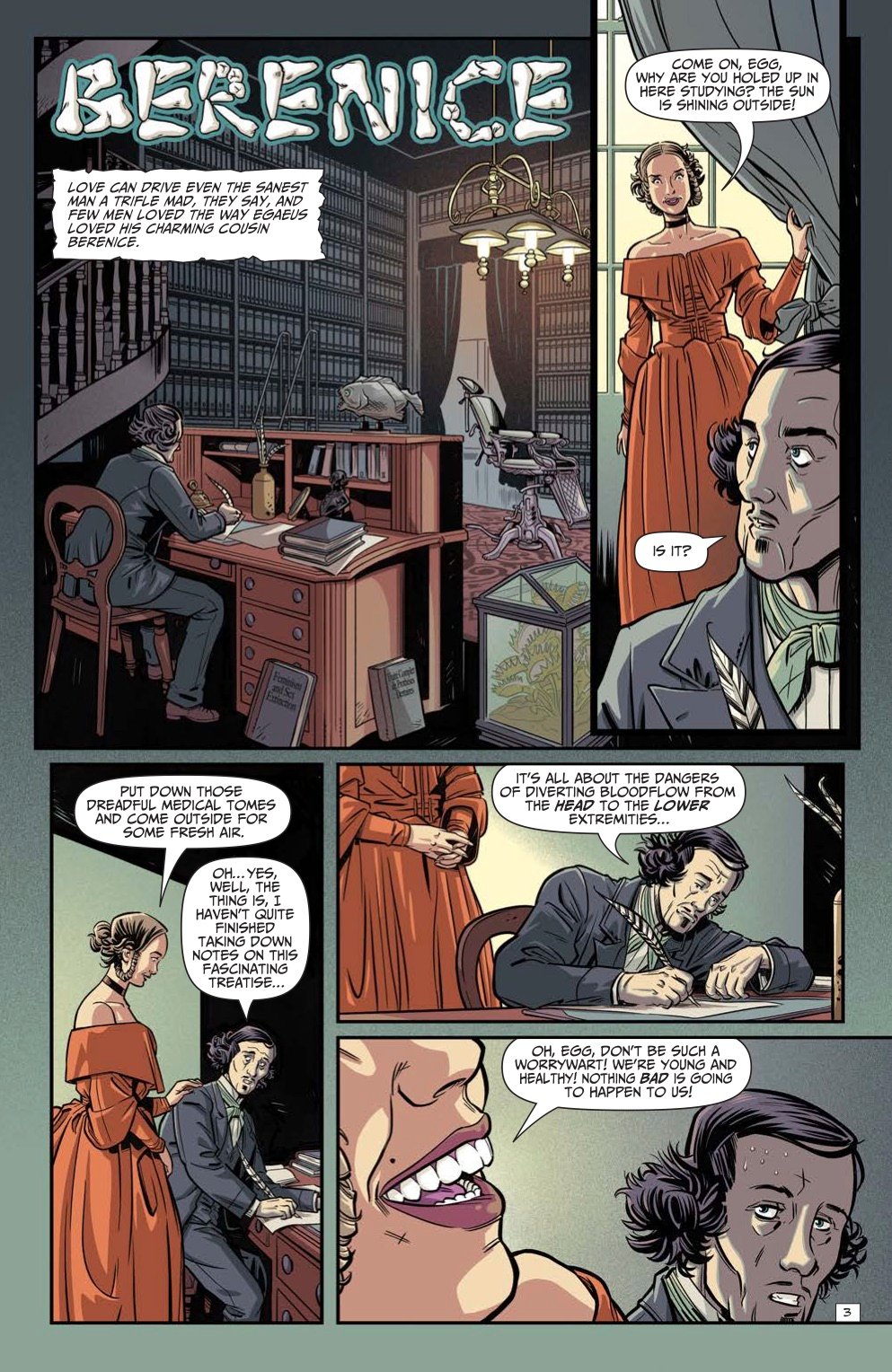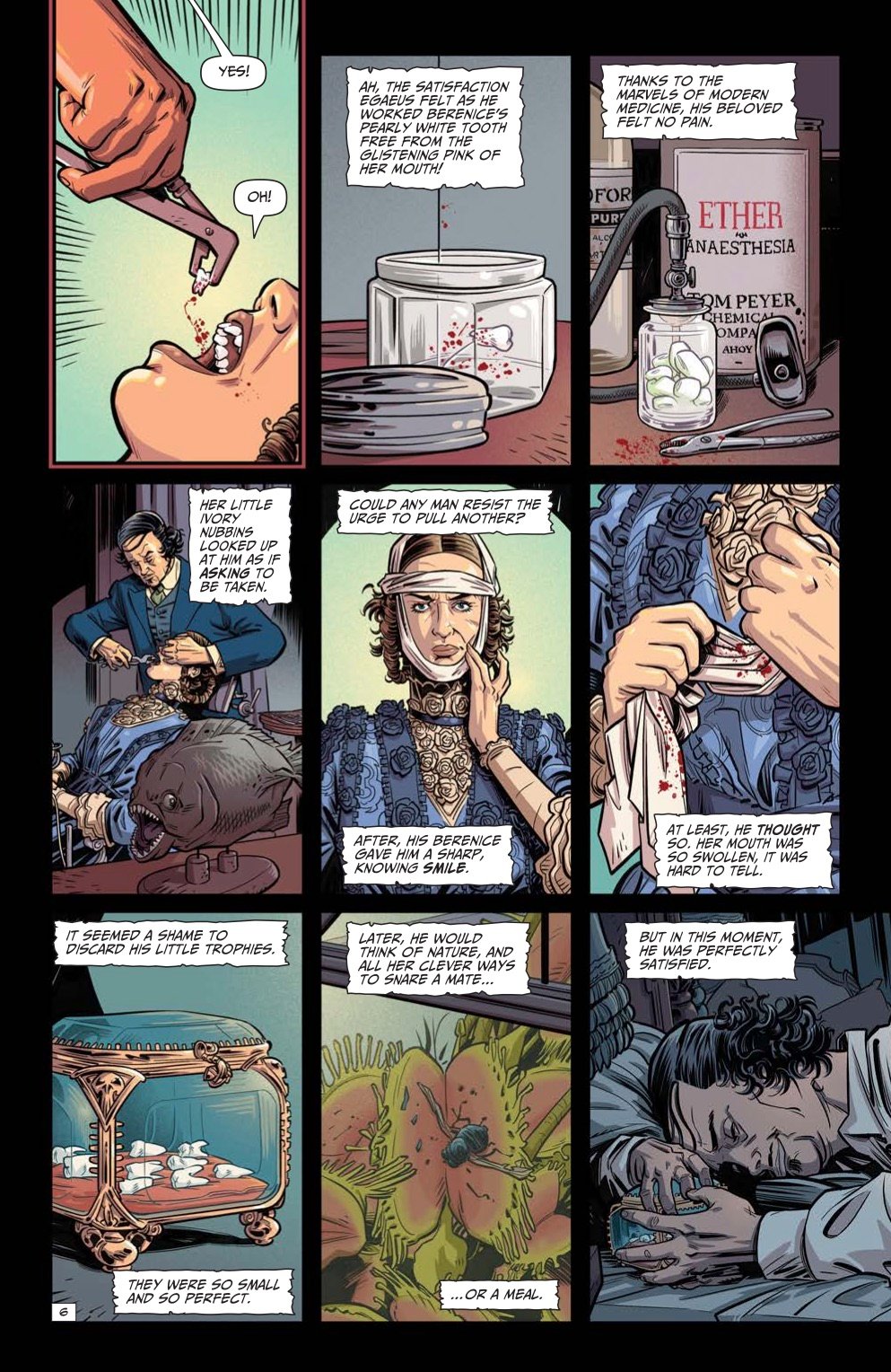Featuring new takes on the Master of Macabre's classic tales, Edgar Allan Poe's Snifter of Terror is back for its second season at AHOY Comics, and ahead of the second issue's release on February 19th, we've been provided with exclusive preview pages from writer Alisa Kwitney and artist Mauricet's new version of Poe's 1835 short story "Berenice."
