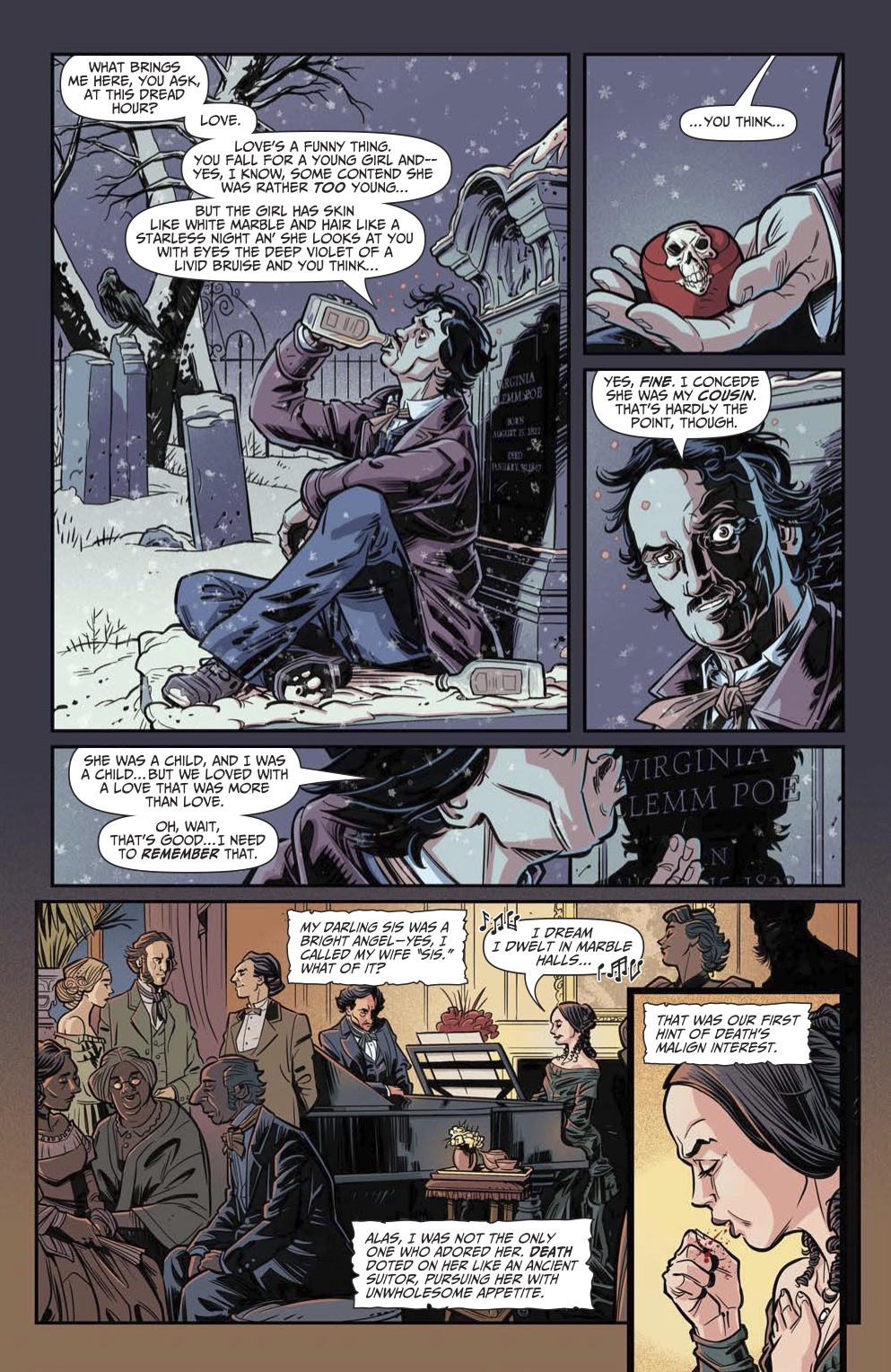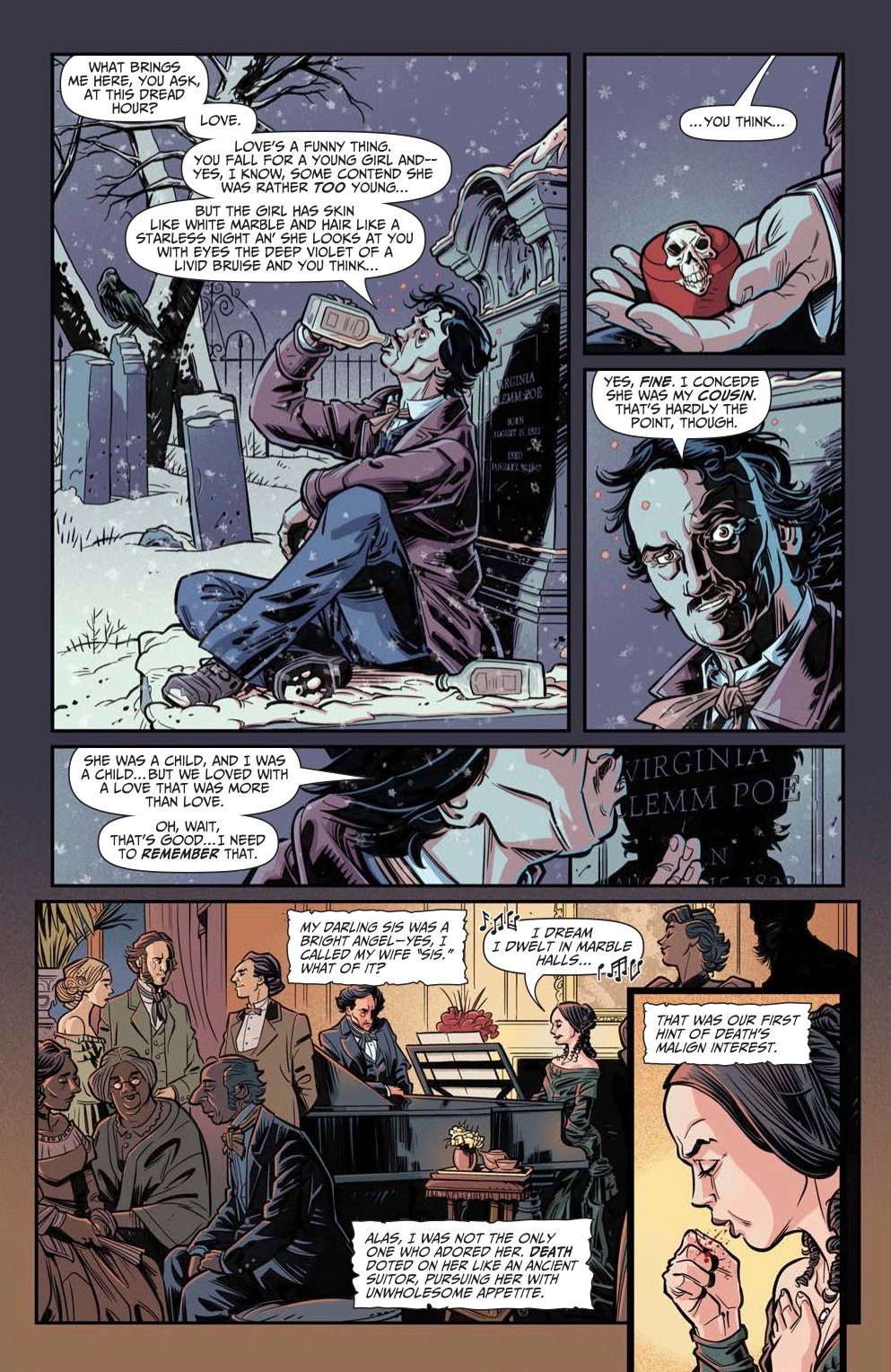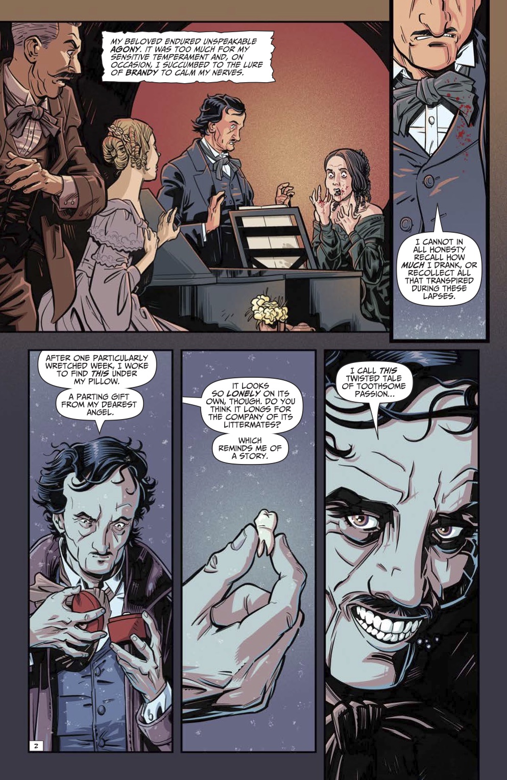 Featuring new takes on the Master of Macabre's classic tales, Edgar Allan Poe's Snifter of Terror is back for its second season at AHOY Comics, and ahead of the second issue's release on February 19th, we've been provided with exclusive preview pages from writer Alisa Kwitney and artist Mauricet's new version of Poe's 1835 short story "Berenice."