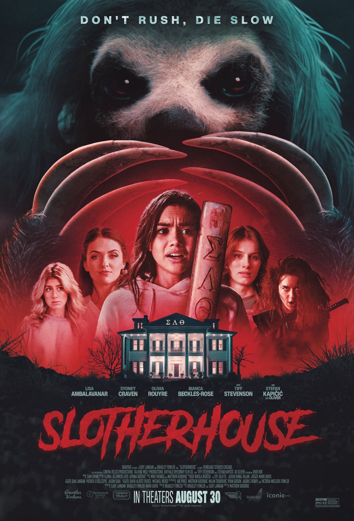 After becoming the mascot for an unsuspecting sorority, a seemingly lovable sloth unleashes their killer instincts on the members of the Sigma Lambda Theta house in the official trailer for Slotherhouse, coming to theaters on August 30th from Gravitas Ventures: