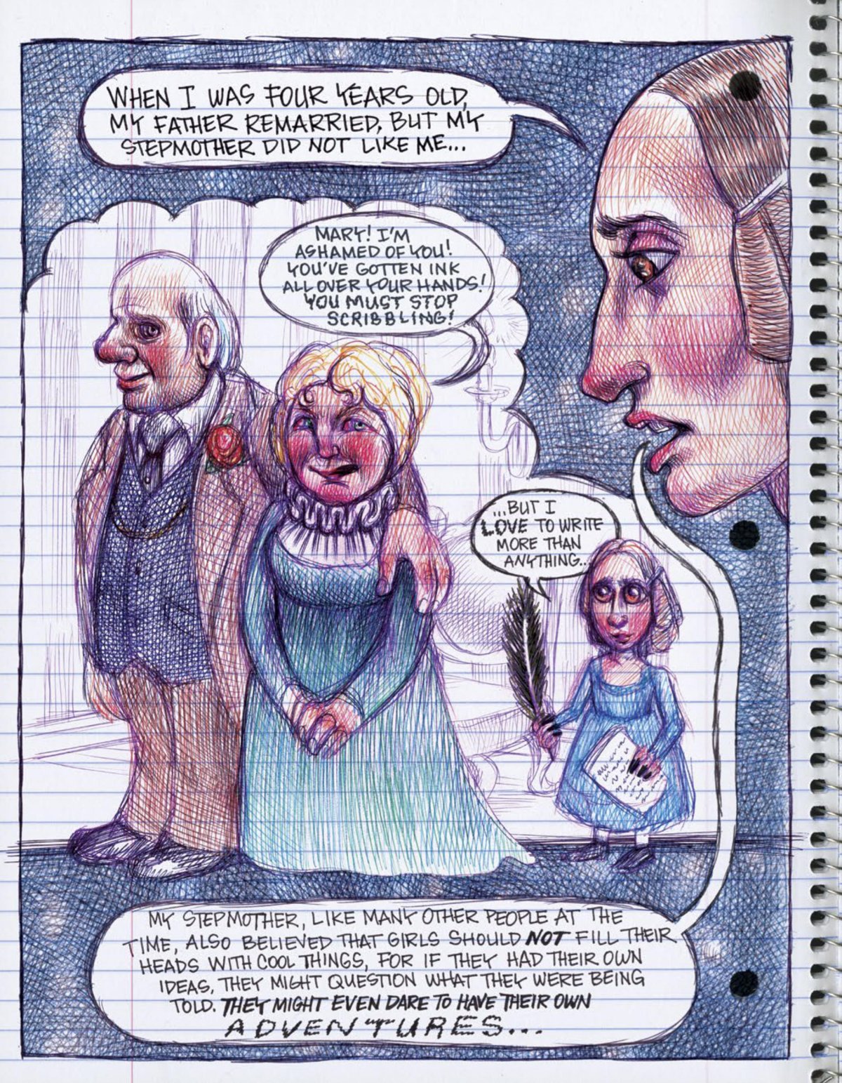 "Noisemakers is a collection of biographic comics about women who’ve made history by raising their voices. I wanted to include Mary Shelley in the collection, because she used her voice tell stories in a way no one else had done. She didn’t just bring to life a single monster. She brought to life an entire new genre of storytelling.