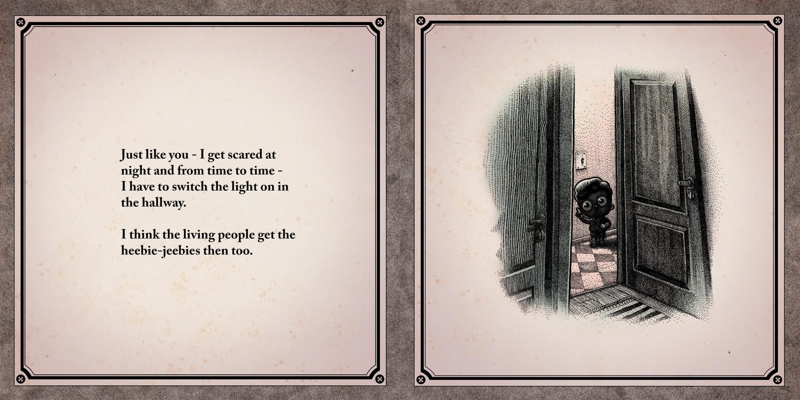 The books that inspired the look of GHOSTS ARE PEOPLE TOO were mostly the images from an old french book called "LES CHEFS-D'OEUVRE DE L'EPOVANTE" and the English classic "Gashlycrumb Tinies" from Edward Goey's.