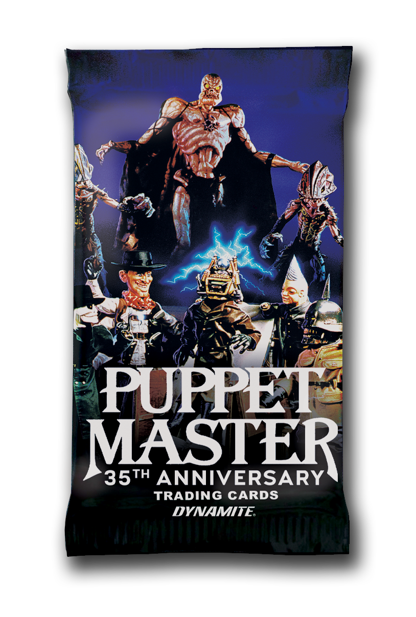 I can't believe it's already been 35 years since the release of the first Puppet Master and, to celebrate, Full Moon Features has teamed up with Dynamite Entertainment to produce collectibles and other projects from the Puppet Master series. A crowdfunding campaign was recently launched to support the trading card release and it's already successfully funded, so fans will be able to get some pretty cool campaign-exclusive cards, along with the main set. To give you a taste of what's to come, we have an exclusive look at the gallery for both the crowdfunder-exclusive cards AND the vintage clay-stock cards: