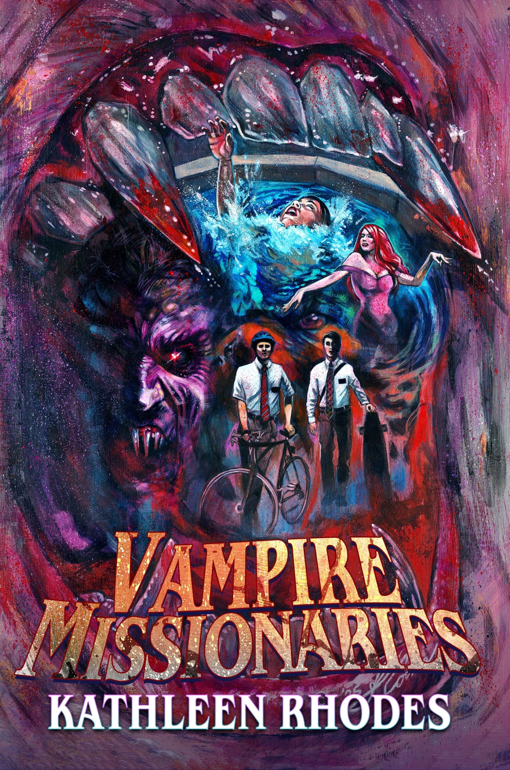 This April, Kathleen Rhodes’ Vampire Missionaries will be released by Dead Sky Publishing. Described as a "haunting blend of Gothic horror, religious satire, and supernatural thriller, this is a bold, subversive story that pits faith against fangs in a battle for redemption." We're excited to share with Daily Dead readers an exclusive look at the book's cover, featuring art from Justin Coons.