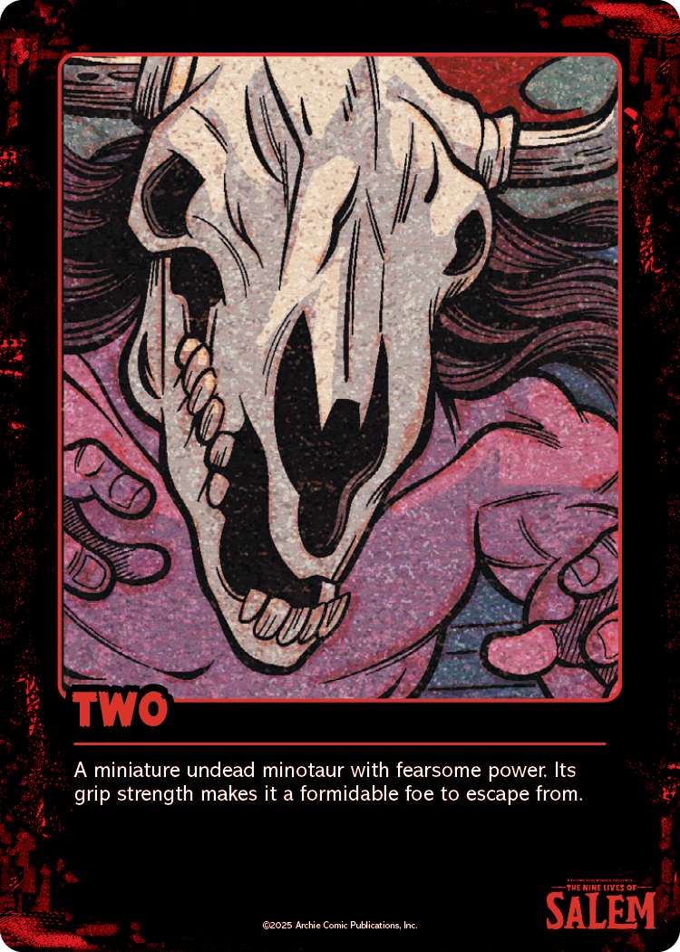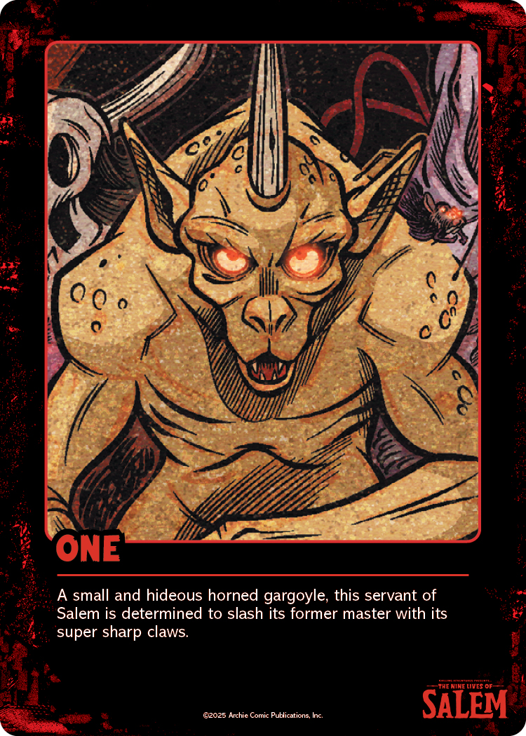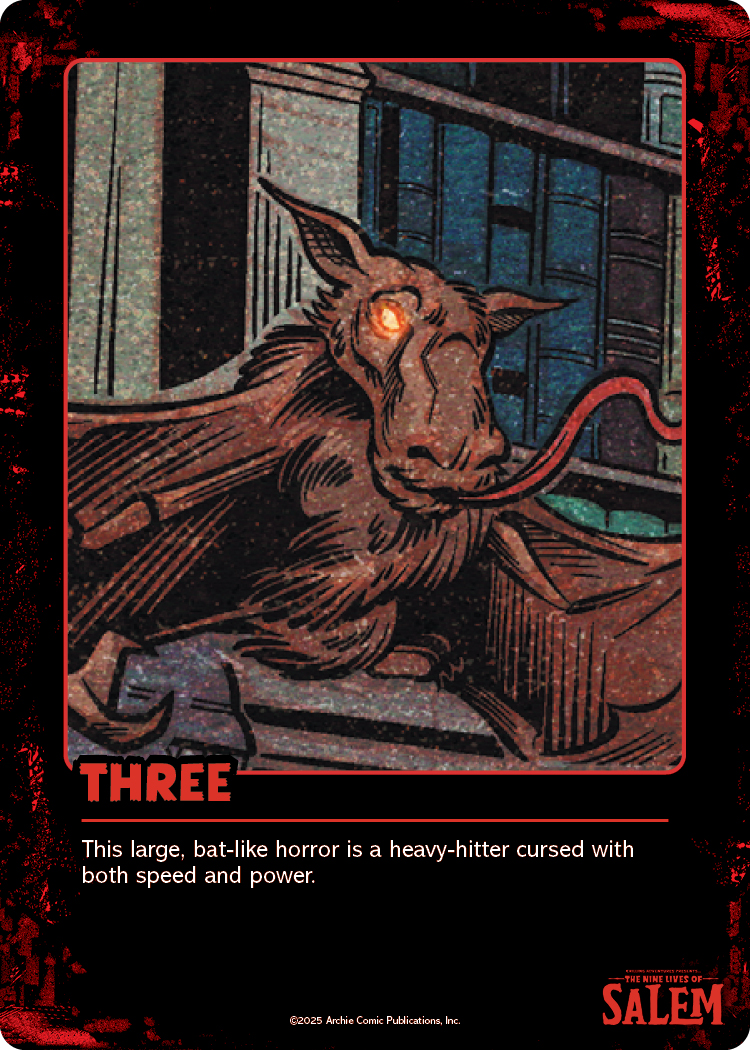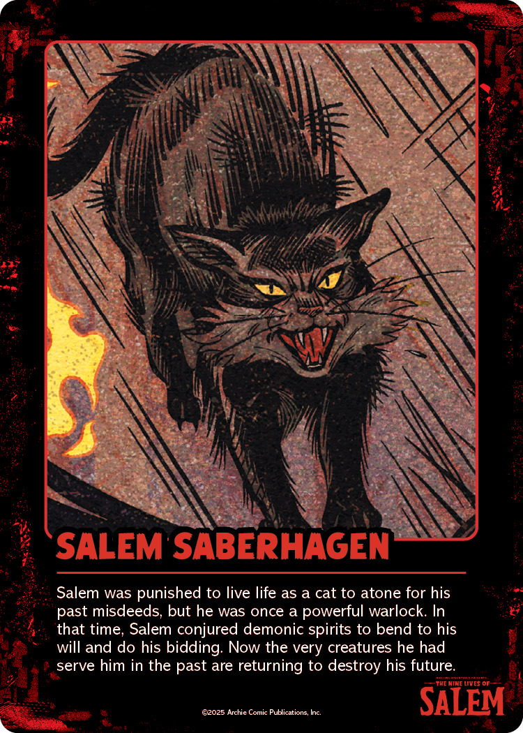 Reuniting writer Cullen Bunn and artist Dan Schoening (who previously teamed up for the Chilling Adventures of Salem one-shot and two installments of The Cult of That Wilkin Boy), The Nine Lives of Salem will pit Greendale's resident magical cat against vengeful demons from his past, and as a special treat for Daily Dead readers, we have an exclusive look at three digital trading cards that introduce some of the revenge-seeking spirits found within the pages of the upcoming Salem one-shot before it hits comic shop shelves on February 26th!