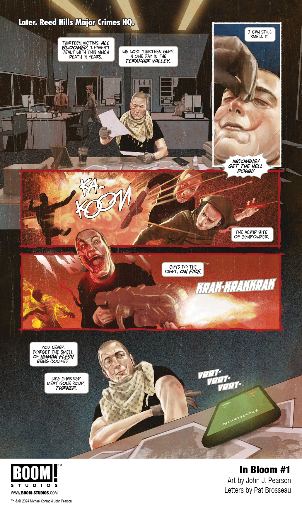 In Bloom #1 features main cover art by John J. Pearson, with variant covers from Alison Sampson, Jae Lee, and June Chung. Take a look at all covers and preview pages below: