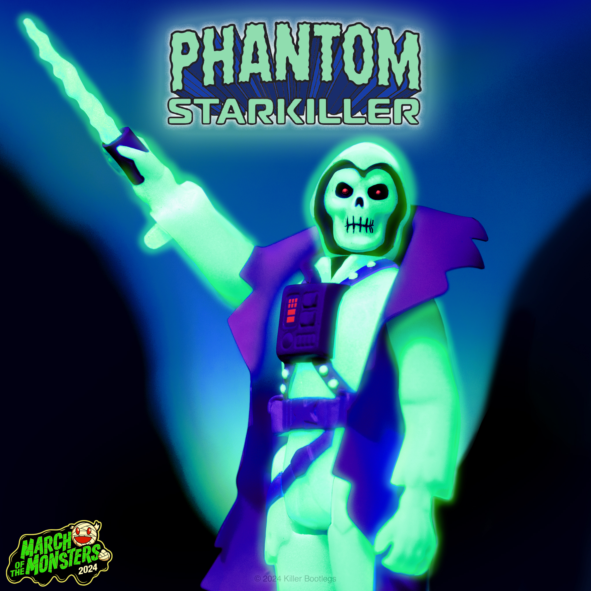 The rumors are true and the horror, even more so; Phantom Starkiller has returned yet again, this time in radiant glow! This 3.75” scale, articulated Monster Glow Phantom Starkiller ReAction Figure features retractable sword and vinyl cape accessories, and is injected with glow-in-the-dark plastic that makes the Cosmic Ghoul Warrior look extra other-wordly! Add the Monster Glow Phantom Starkiller ReAction Figure to your collection or risk becoming the legendary assassin’s next victim!