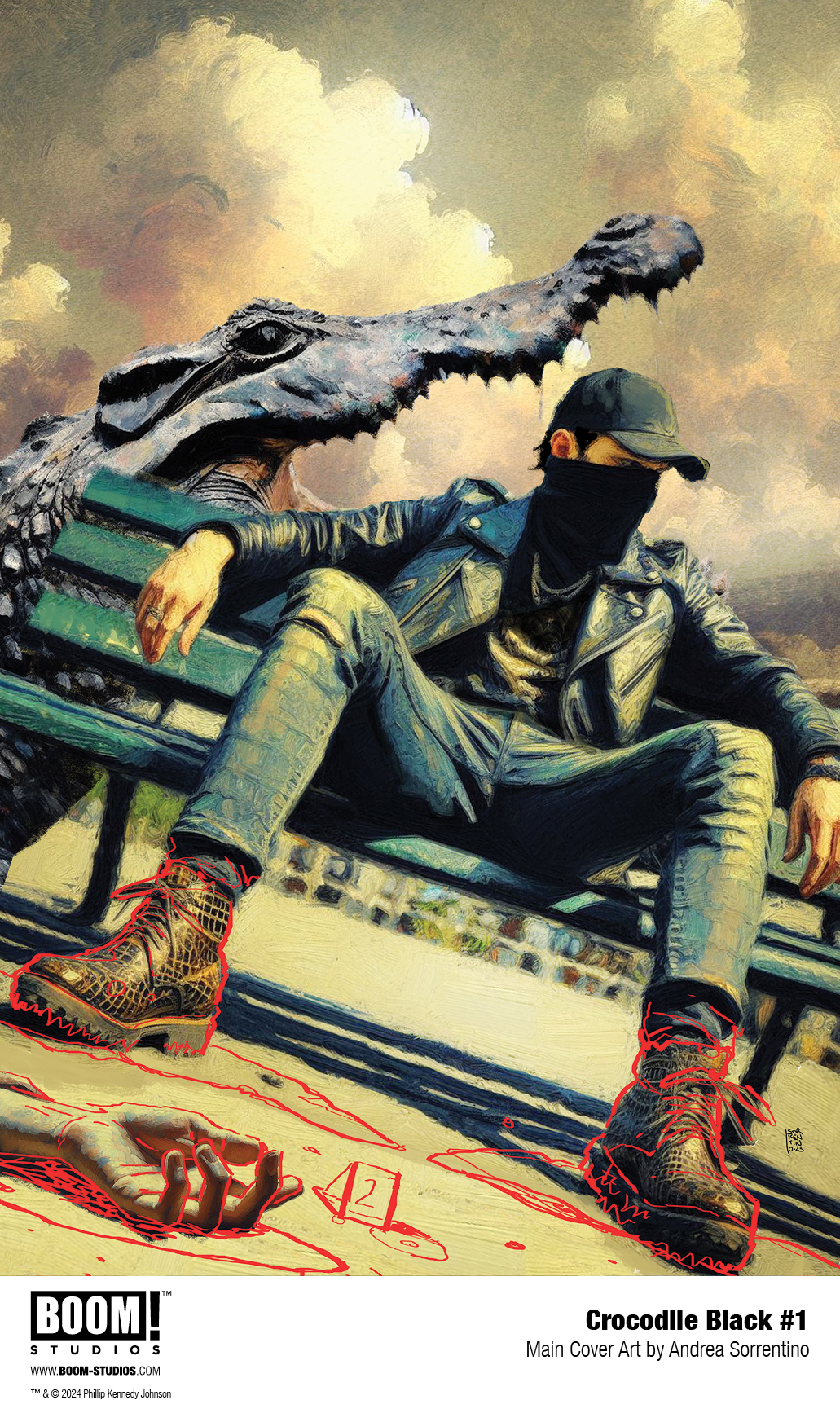 Eisner-nominated writer Phillip Kennedy Johnson (Incredible Hulk) and rising star artist Som (Brigands) give birth to an iconic new noir lead in the macabre new thriller CROCODILE BLACK at BOOM! Studios in May 2024.