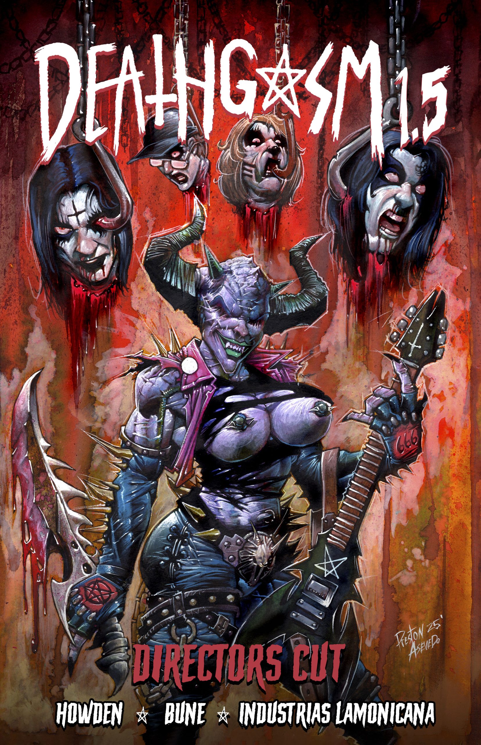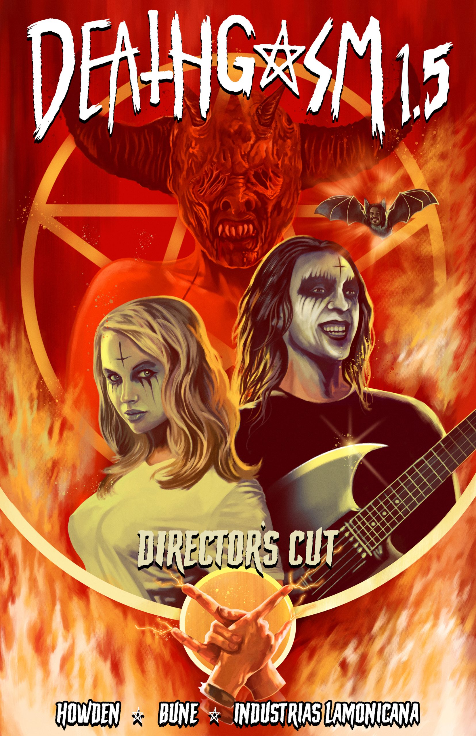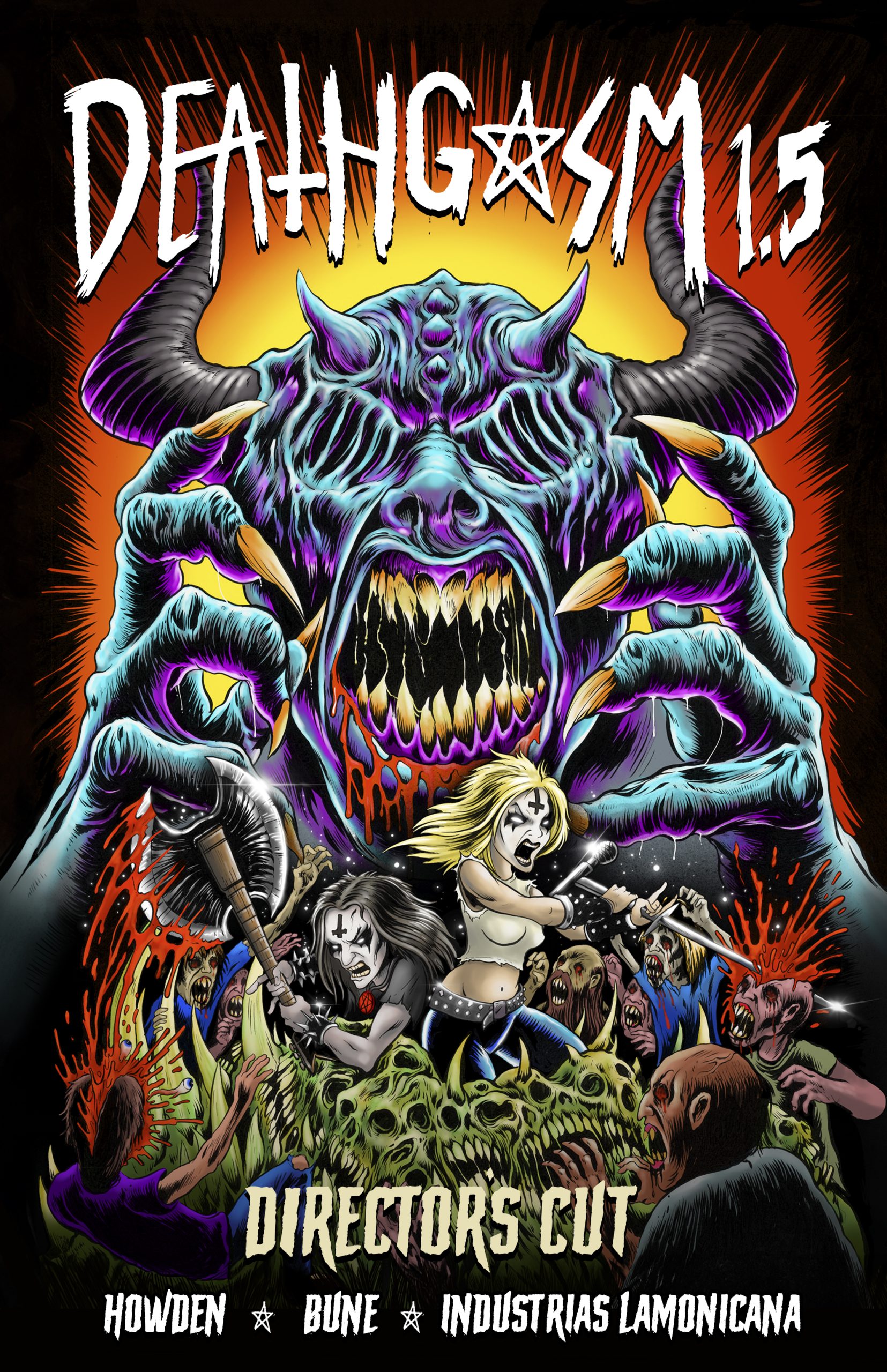 Deathgasm 1.5: Director’s Cut is an 80-page graphic novel from writer/creator/director Jason Howden (Deathgasm, Guns Akimbo) writer Peter Bune (Squatch Watch), artist Industrias Lamonicana (Fierro), colorist Zac Atkinson (Farscape, Star Trek), and letterer Jeremiah Lambert (Masters of the Universe, Transformers). The book also features contributions from writers Michael Schwartz (Armored, Zombie Town) and Joshua Viola (True Believers, Legacy of Kain: Soul Reaver), various hardcover editions with cover art by Skinner (Skin Crawl Magazine), Preston Asevedo (The Exiled), and Matthew Therrien (The Wrath of Becky).