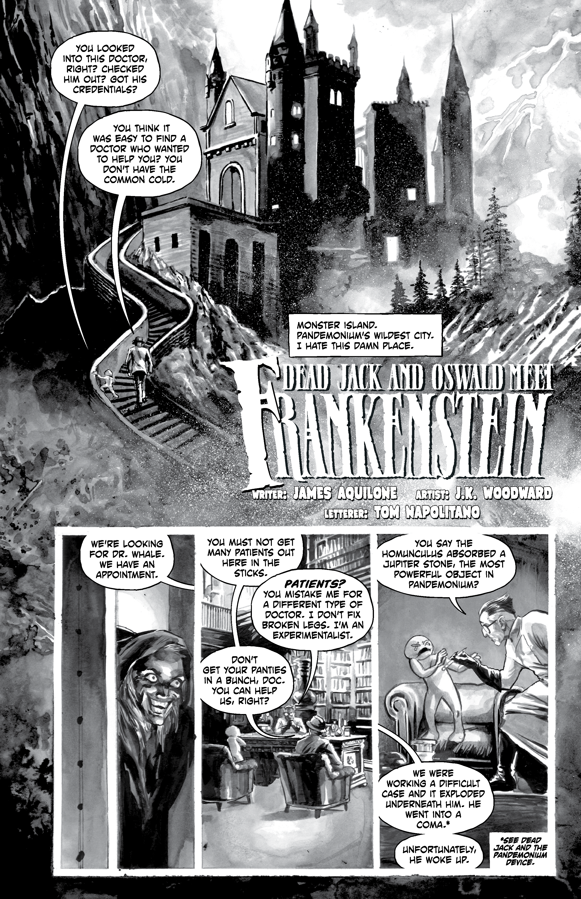 Now funding on Kickstarter (and already successfully backed), we have an exclusive preview of "Dead Jack and Oswald Meet Frankenstein" from writer James Aquilone, artist J.K. Woodward, and letterer Tom Napolitano that you can read right now!