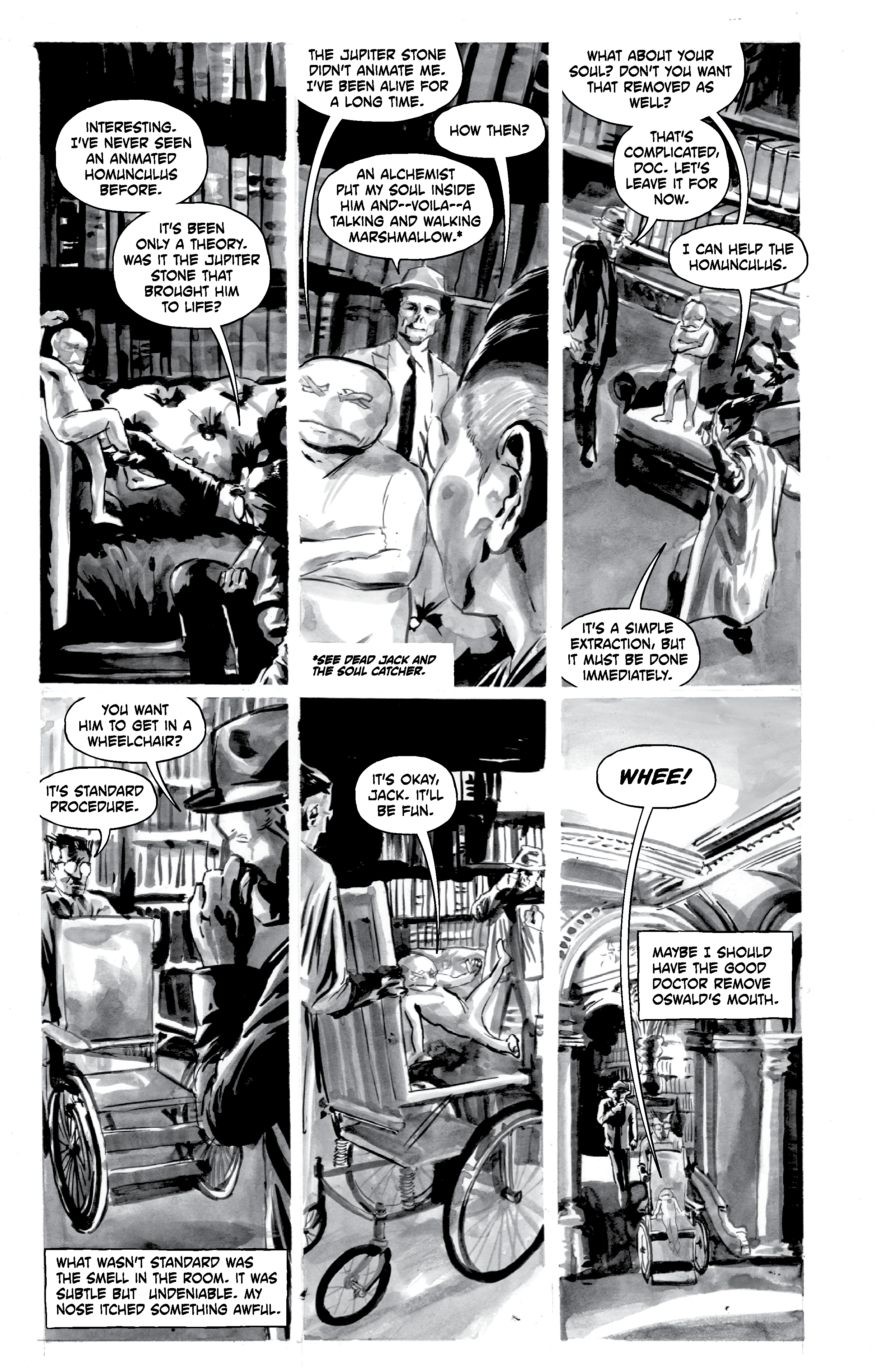 The very first Dead Jack comic, "Dead Jack and Oswald Meet Frankenstein," written by James Aquilone and illustrated by J.K. Woodward,