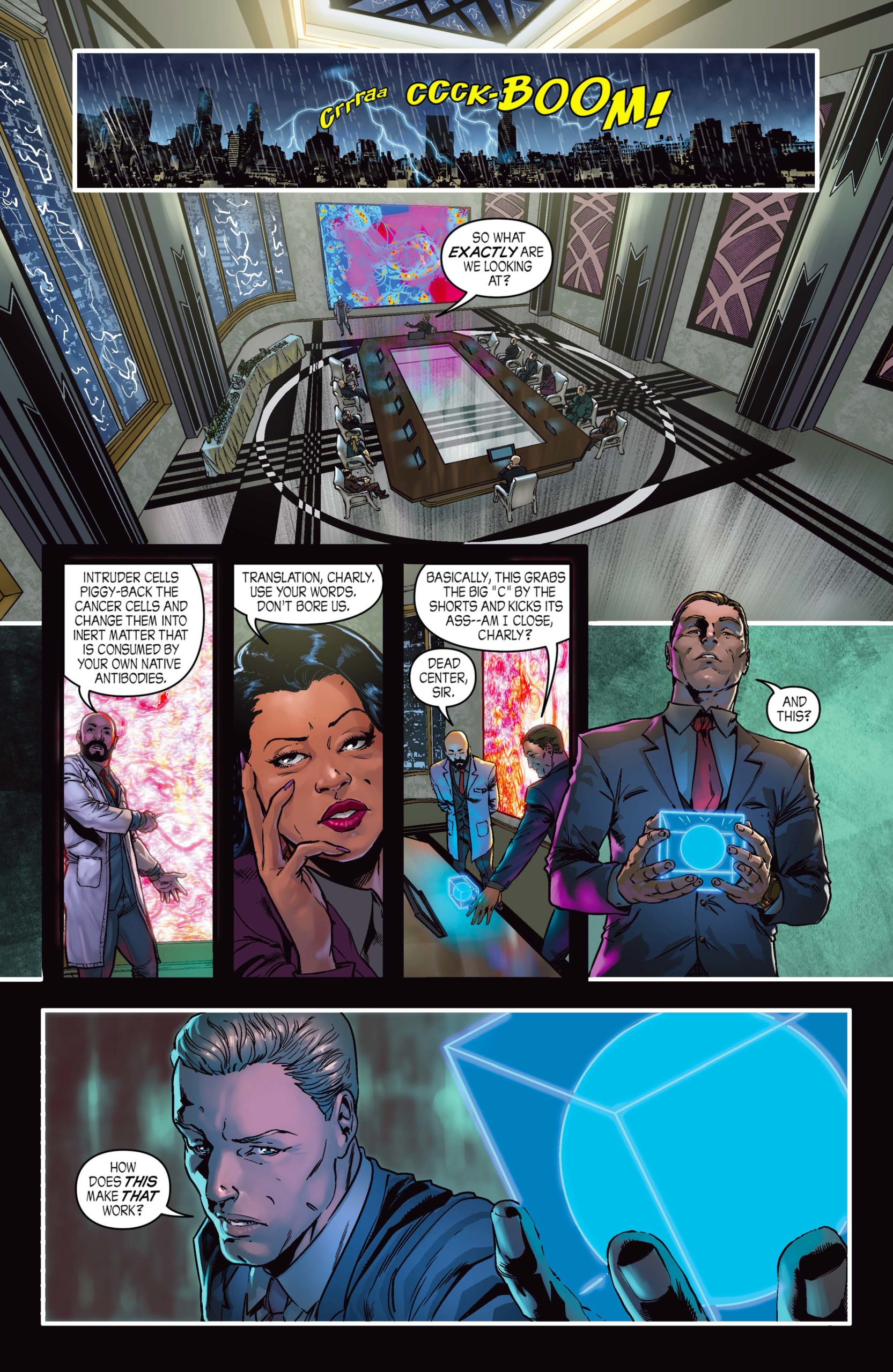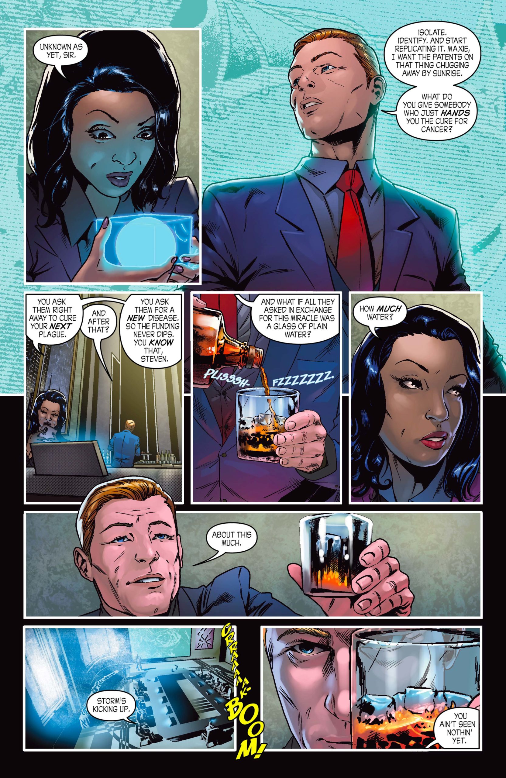 “With The Envoy—my third graphic novel for Storm King Comics—I wanted to lean away from straight action pulp and tackle the disparity between the supernatural and the scientific—the yin and yang of alien contact versus ghostly visitations. To show how these opposites are startlingly alike. How two people who couldn't be further apart ideologically are actually seeking the same goal, the same prize. Anybody who has read my previous work for Storm King Comics already knows how weird that quest can get.”