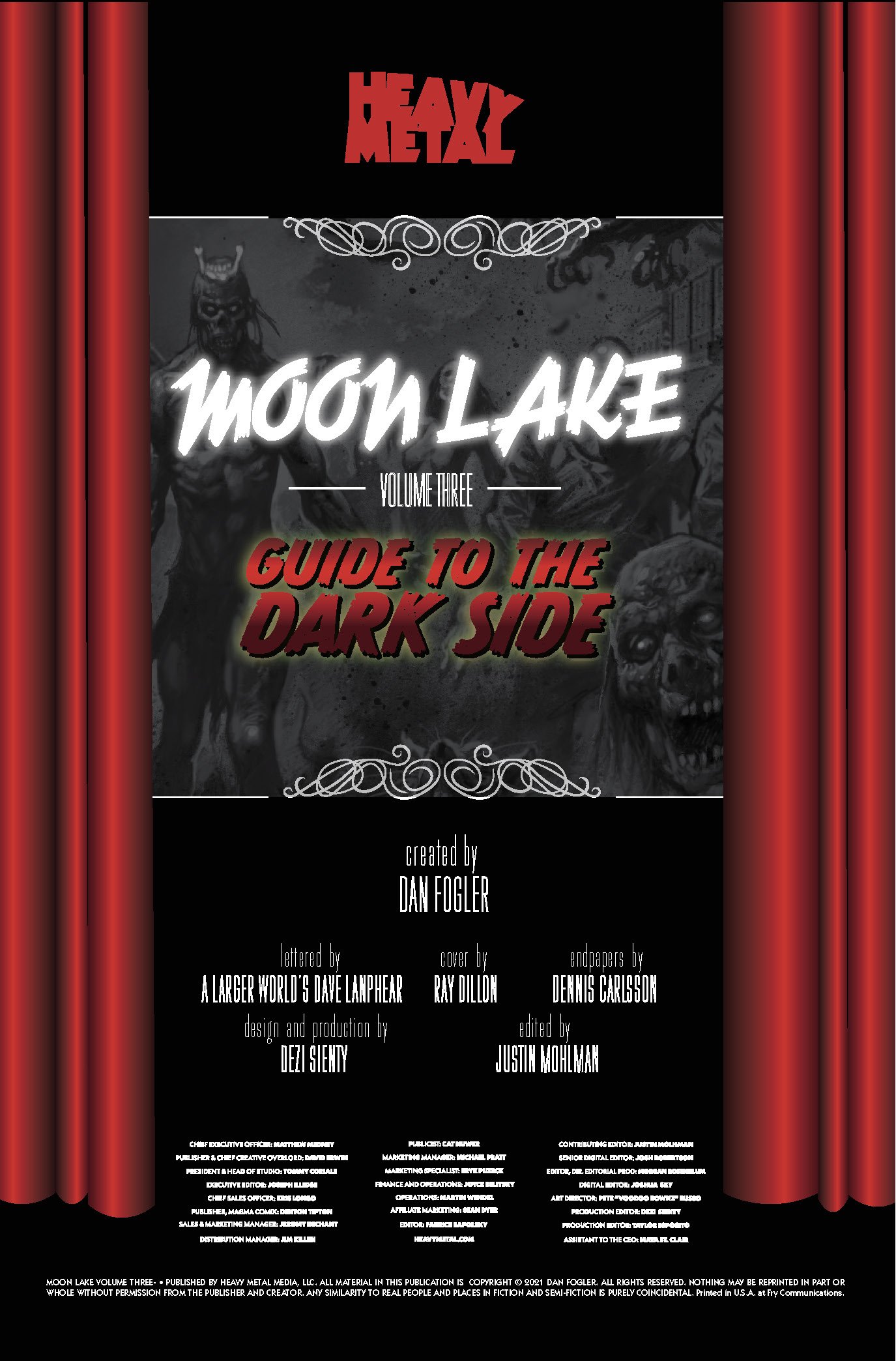 "Moon Lake Volume 3 contains all new content never before published from top-notch talent including Alex Horley, Brendan Columbus, George C. Romero, Becky Cloonan, and tons more. And I'm so excited to be working with Heavy Metal on this book, and doubly excited to be working with Heavy Metal Studios, Bardel Entertainment (Rick and Morty), and Daniel Powell (Irony Point) to develop a Moon Lake series for television!"