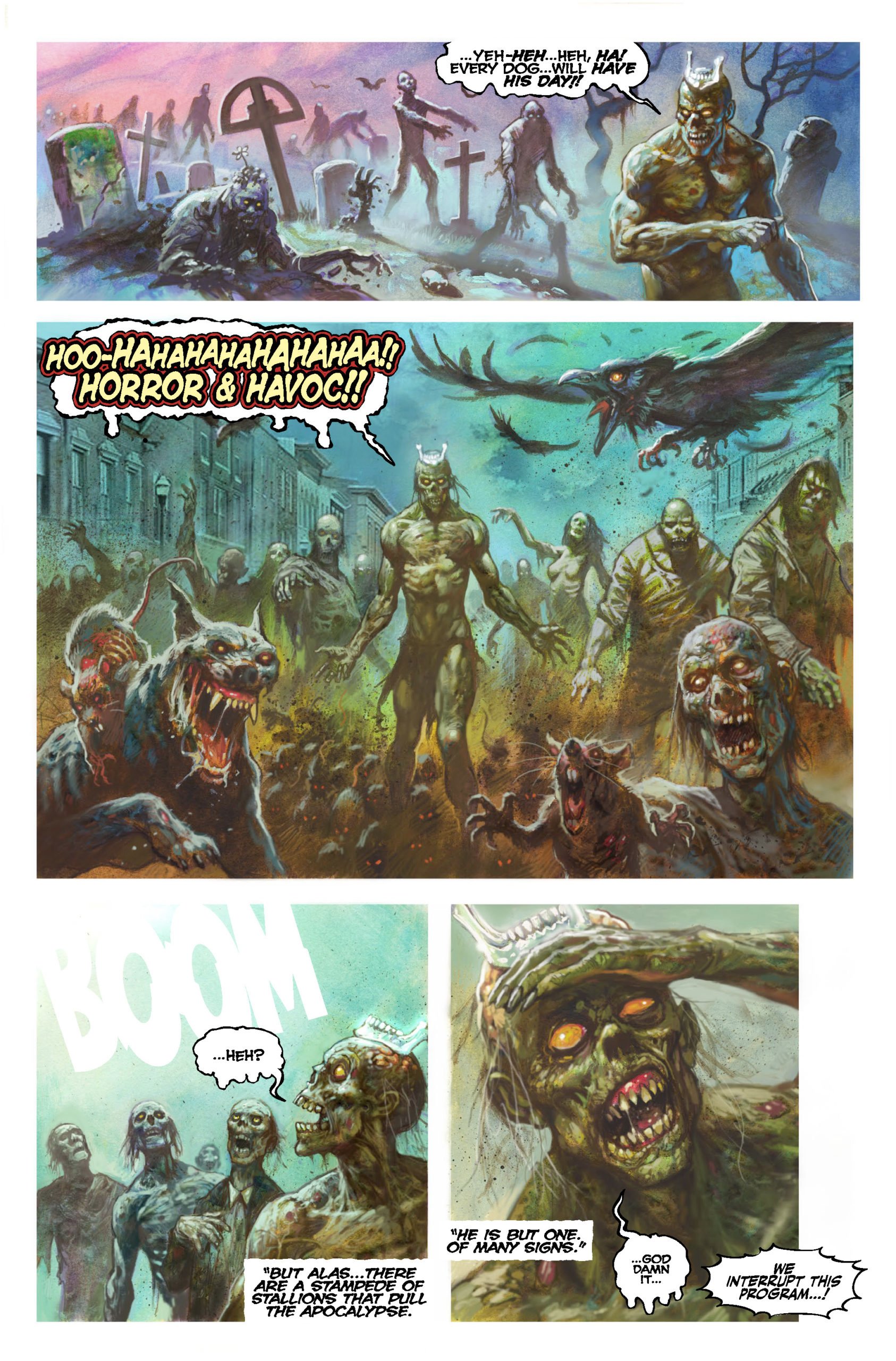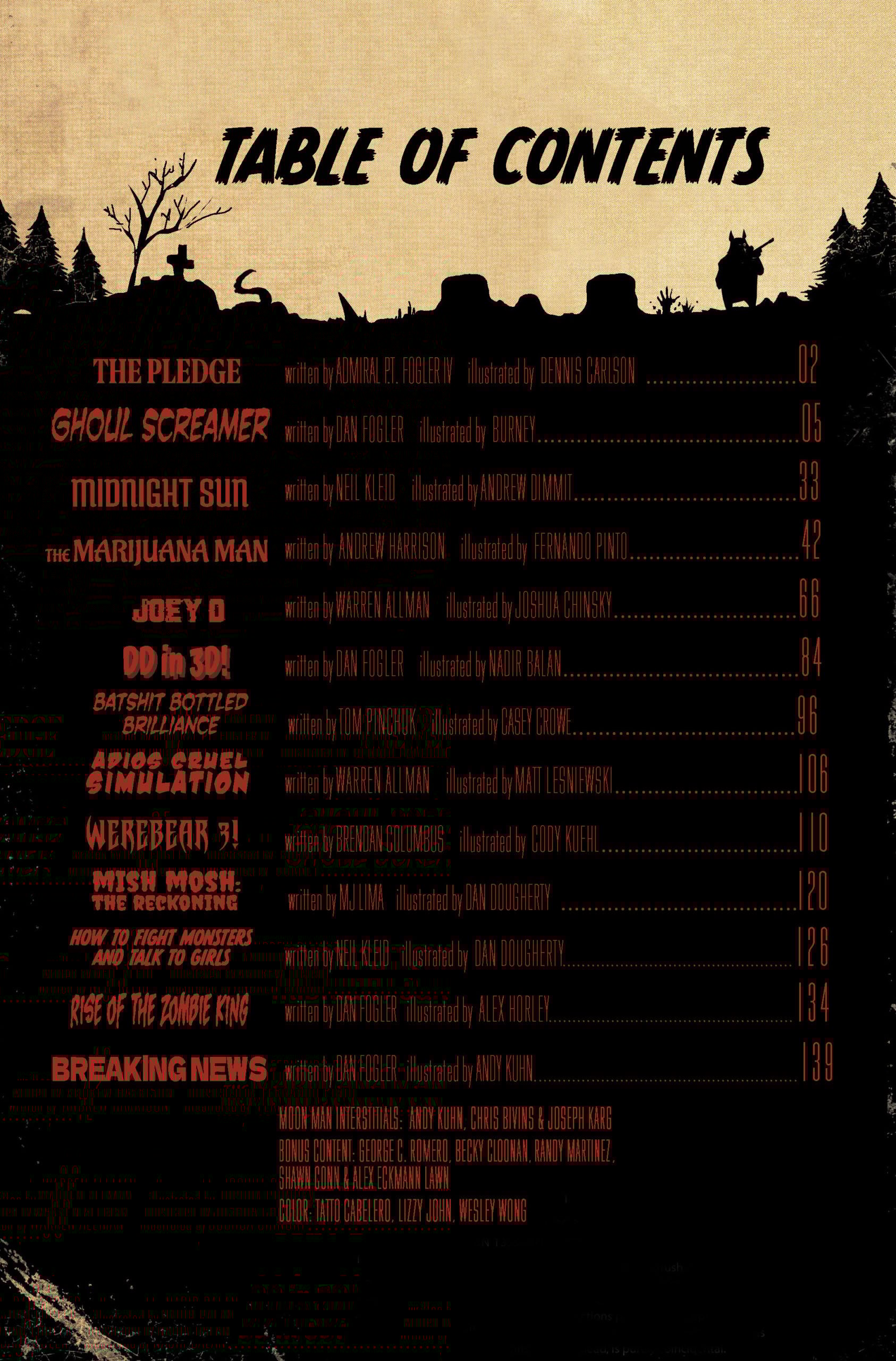 With cover art by Ray Dillon, we have preview pages from "Rise of the Zombie King," written by Fogler, illustrated by Alex Horley, and featuring the recurring living dead character from the first two volumes of Moon Lake!
