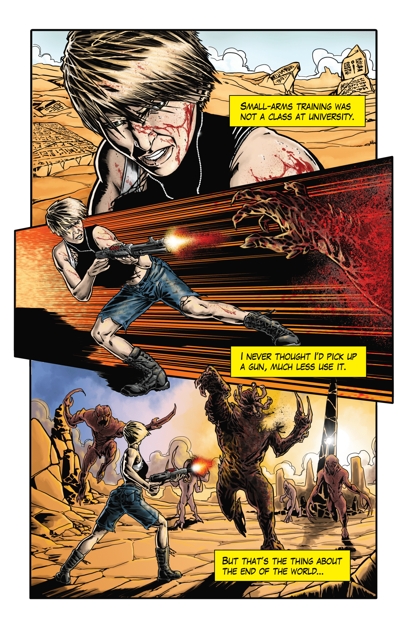 “I'm really enjoying working on this script!” said Marco Bovi. “The first time I met Tom he asked me if I was willing to join him on a horror story and, you know, the first thing I thought was like Oh no, I'm done with bloody gore—And well, I was wrong! So far it's been very rewarding, I like the script and how it’s balanced with action, feelings, and blood of course. Tom is a great writer and I really hope my work could be up to these wonderful characters.”