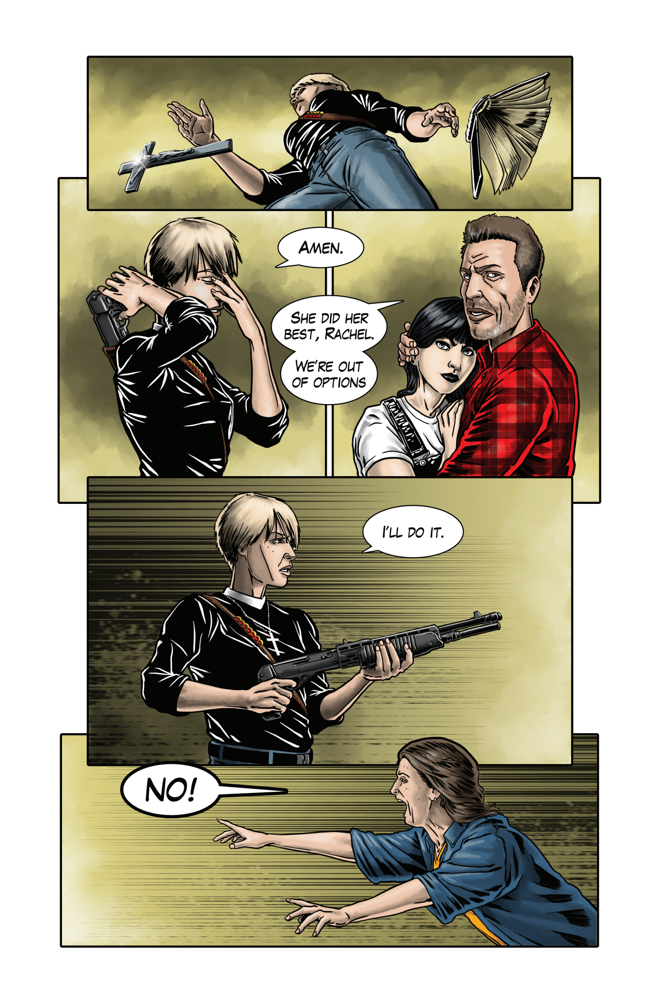 A depressed widower, a punk-rock pastor, and a demon-possessed teenage a girl are the only people who can perform a global exorcism at a hidden sacred site to free the entire globe from a mass demonic possession.