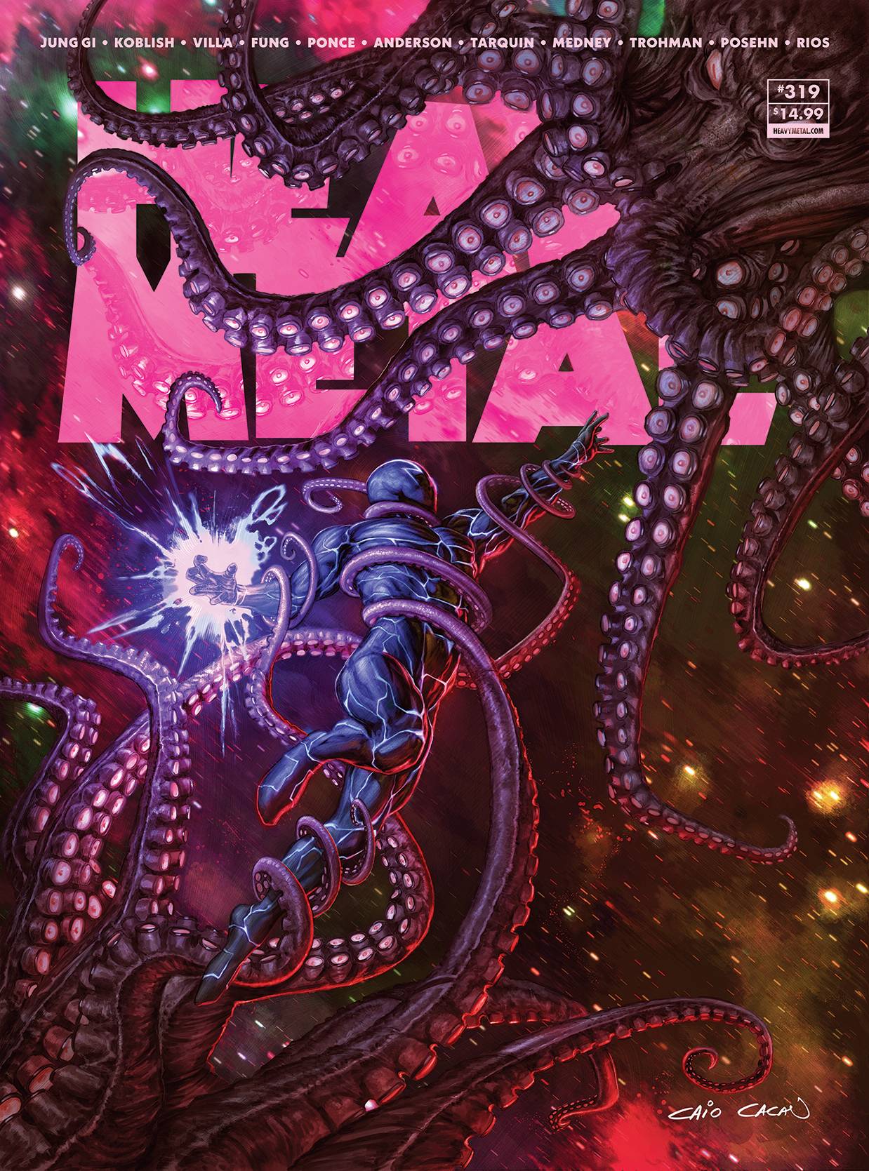 To learn more about Heavy Metal Magazine #319 (which also includes "the penultimate chapter of Joe Trohman, Brian Posehn, and Scott Koblish's horror tale The Axe, the final chapter from Book 1 of Matthew Medney's sci-fi saga Dark Wing, and the continuation of the epic space opera SPU Dolores"), visit: