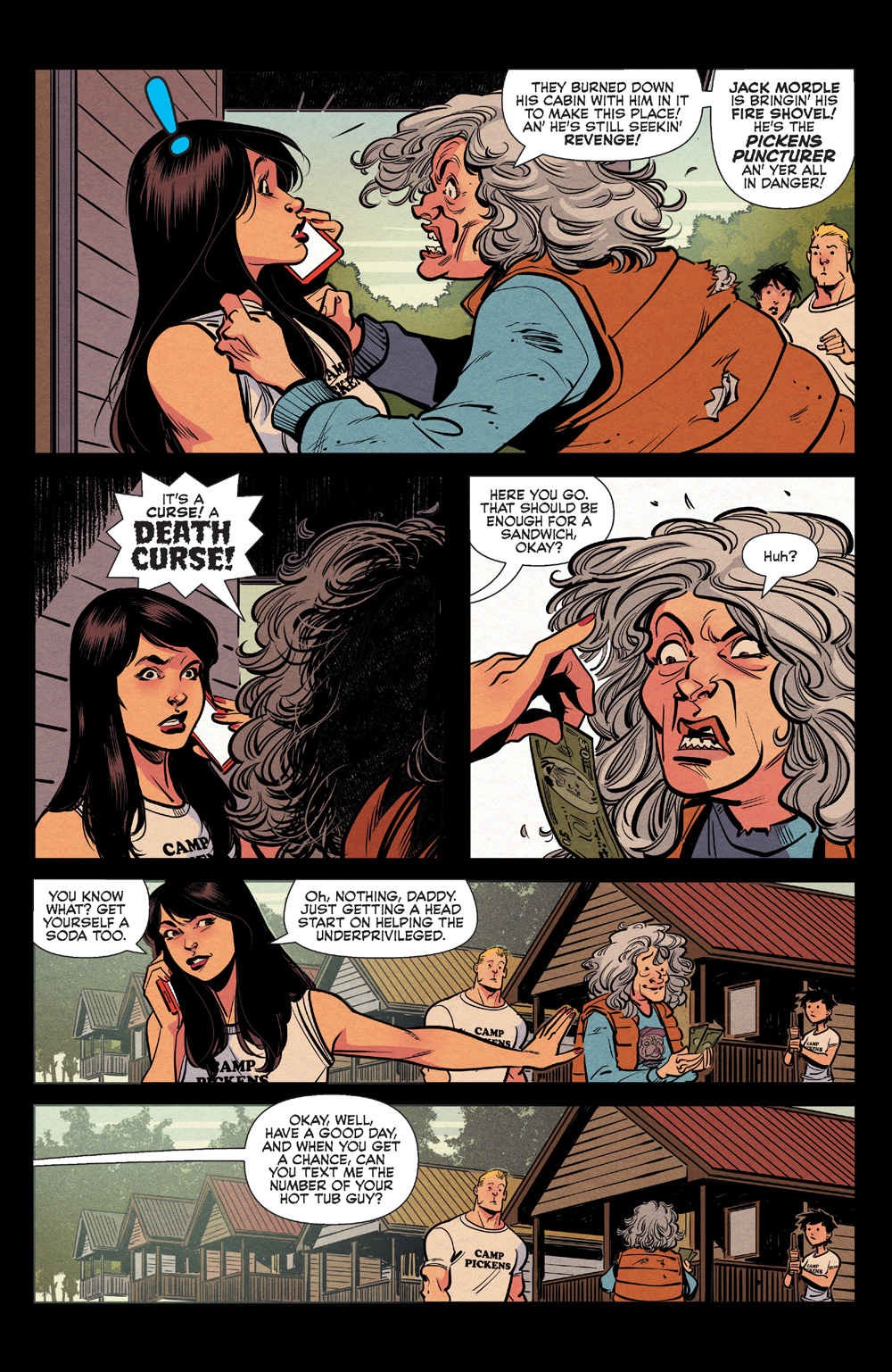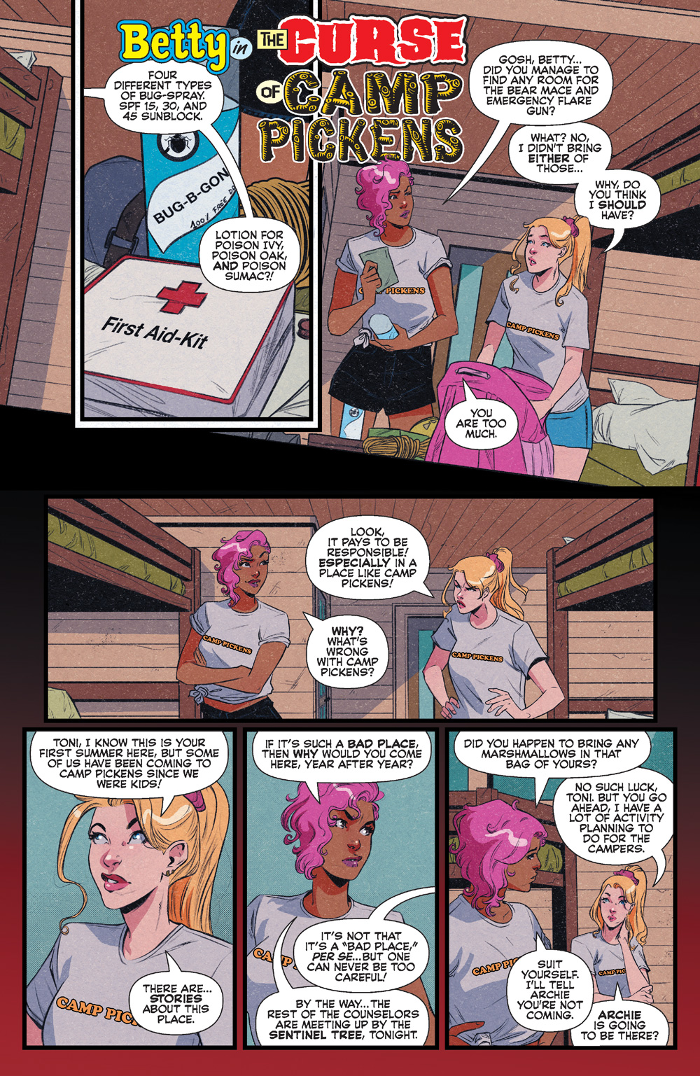 “I was really excited to work with Archie, especially in the horror genre. When we learned the stories would focus around Camp Pickens, obviously, the first instinct is to go pure slasher. However, we realized early on that wasn't what we wanted to do, and infused different horror subgenres into the mix. There's more to the terror than just a masked killer chasing around teenagers; my story is, in more ways than one, a campfire ghost story.”