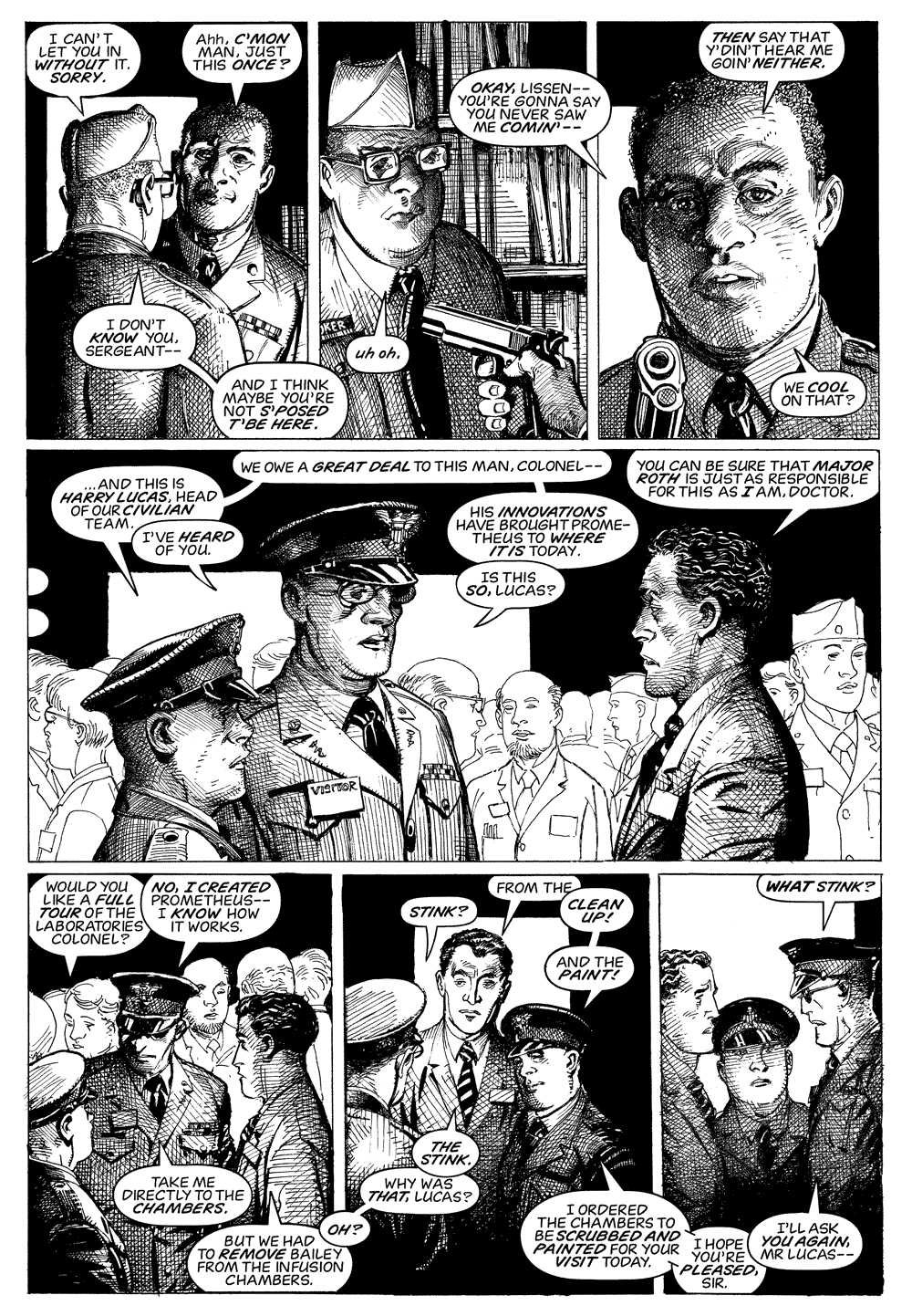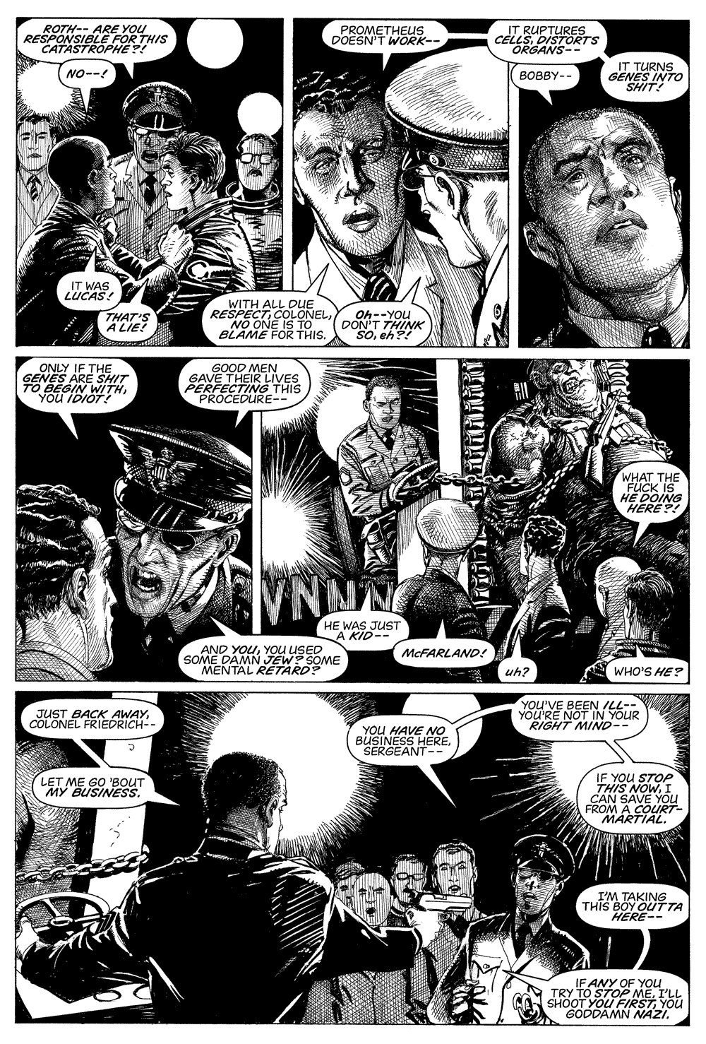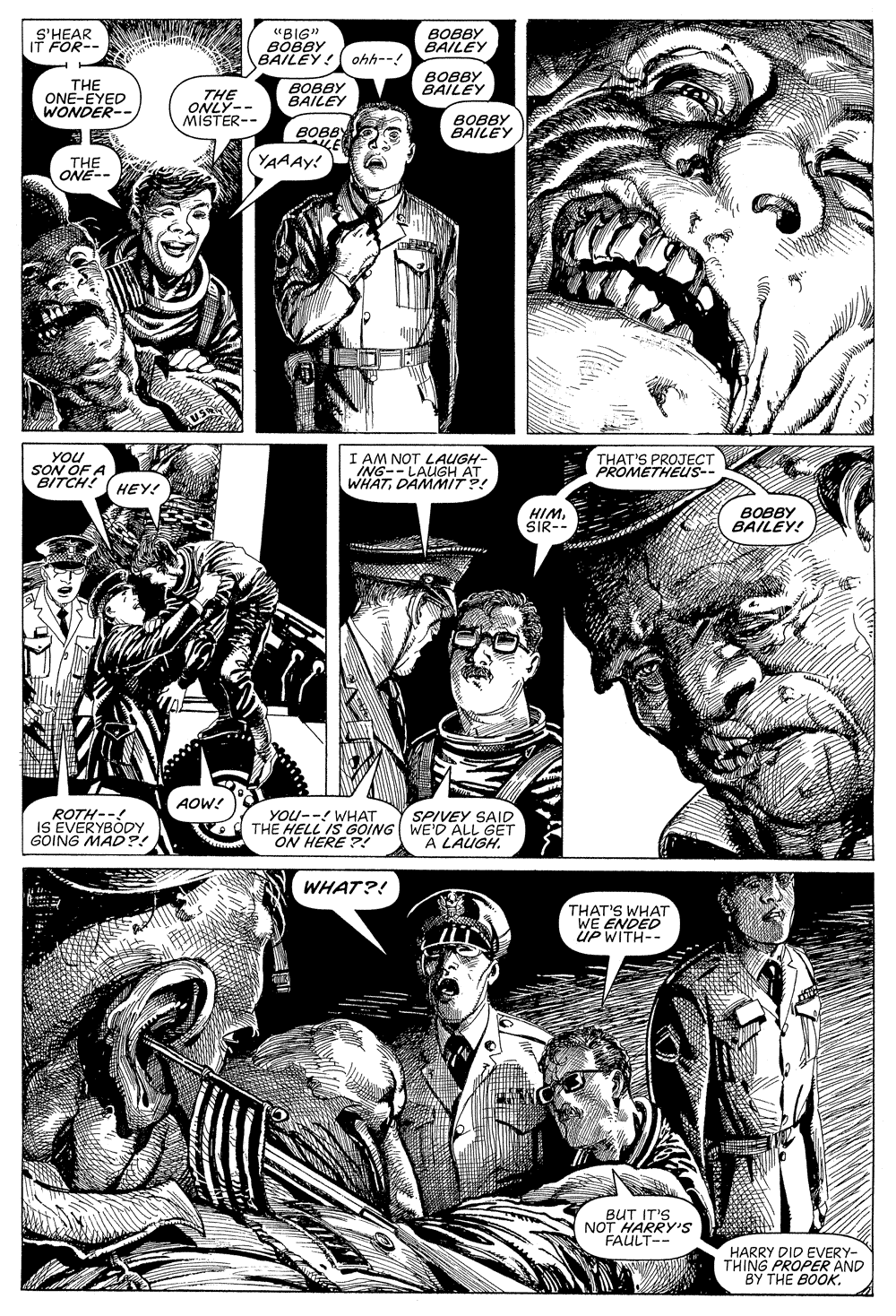 "The year is 1964. Bobby Bailey doesn't realize he is about to fulfill his tragic destiny when he walks into a US Army recruitment office to join up. Close-mouthed, damaged, innocent, trying to forget a past and looking for a future, it turns out that Bailey is the perfect candidate for a secret U.S. government experimental program, an unholy continuation of a genetics program that was discovered in Nazi Germany nearly 20 years earlier in the waning days of World War II. Bailey's only ally and protector, Sergeant McFarland, intervenes, which sets off a chain of cascading events that spin out of everyone's control. As the titular monsters of the title multiply, becoming real and metaphorical, literal and ironic, the story reaches its emotional and moral reckoning. Monsters is the legendary project Barry Windsor-Smith has been working on for over 35 years. A 360-page tour de force of visual storytelling, Monsters' narrative canvas is both vast and deep: part familial drama, part political thriller, part metaphysical journey, it is an intimate portrait of individuals struggling to reclaim their lives and an epic political odyssey across two generations of American history. Trauma, fate, conscience, and redemption are just a few of the themes that intersect in the most ambitious graphic novel of Windsor-Smith's career. Monsters is rendered in Windsor-Smith's impeccable pen-and-ink technique, the visual storytelling with its sensitivity to gesture and composition is the most sophisticated of the artist's career. There are passages of heartbreaking tenderness, of excruciating pain, and devastating violence. It is surely one of the most intense graphic novels ever drawn."
