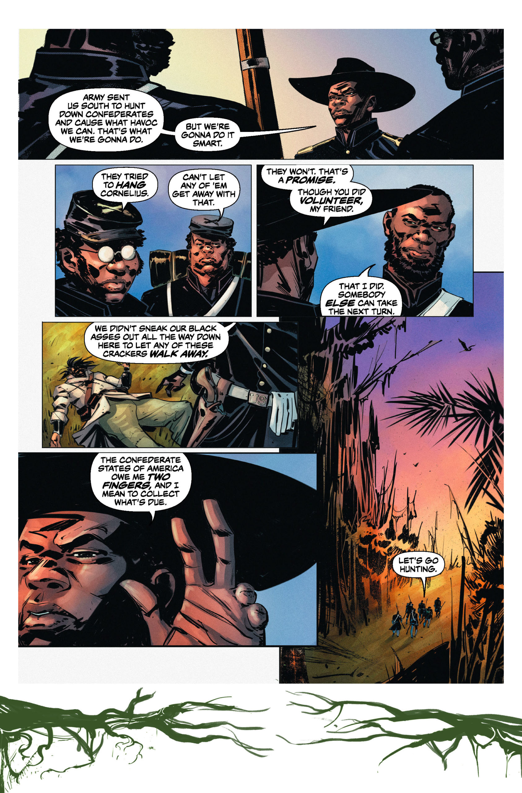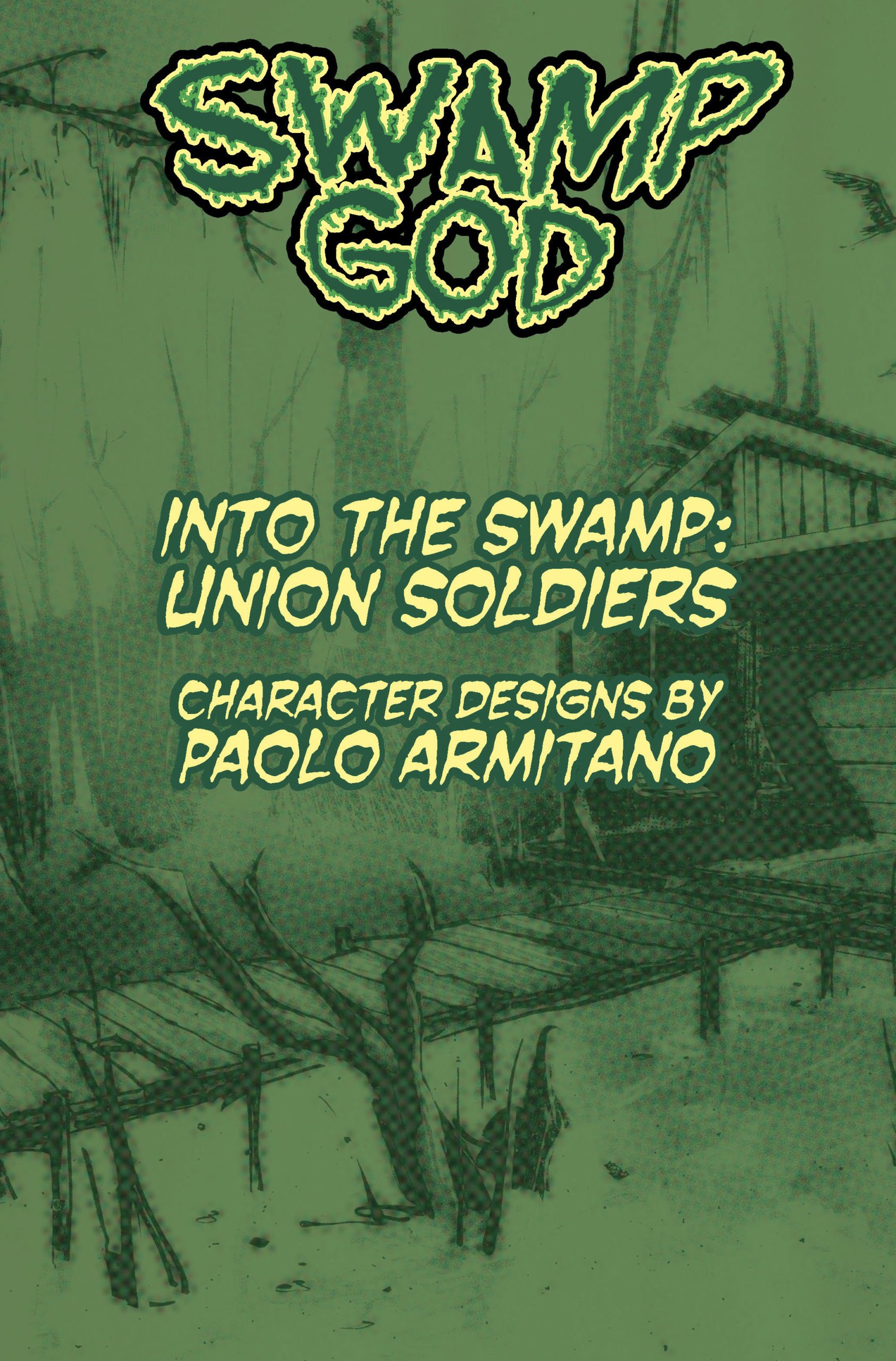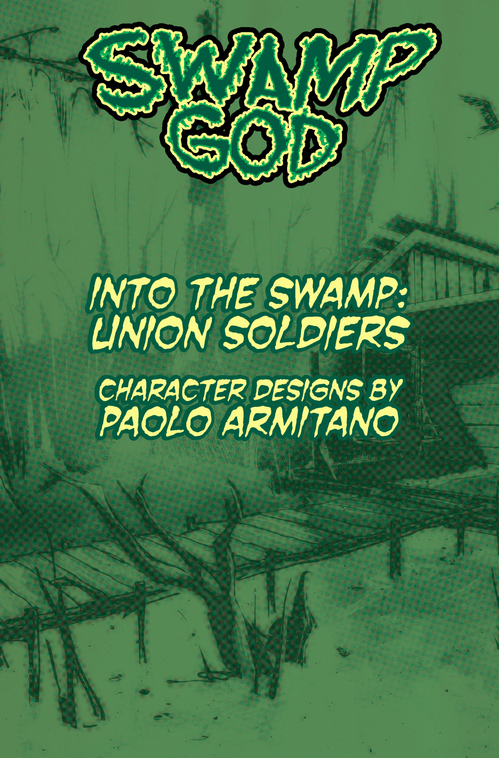 Swamp God Synopsis: "At the end of the American Civil War, a ragtag squad of Confederate soldiers calls upon the ultimate evil to save the South. Now, the remains of their unit must team up with Union soldiers to survive the horrors of the Swamp God. This issue also features character designs by Paolo Armitano."