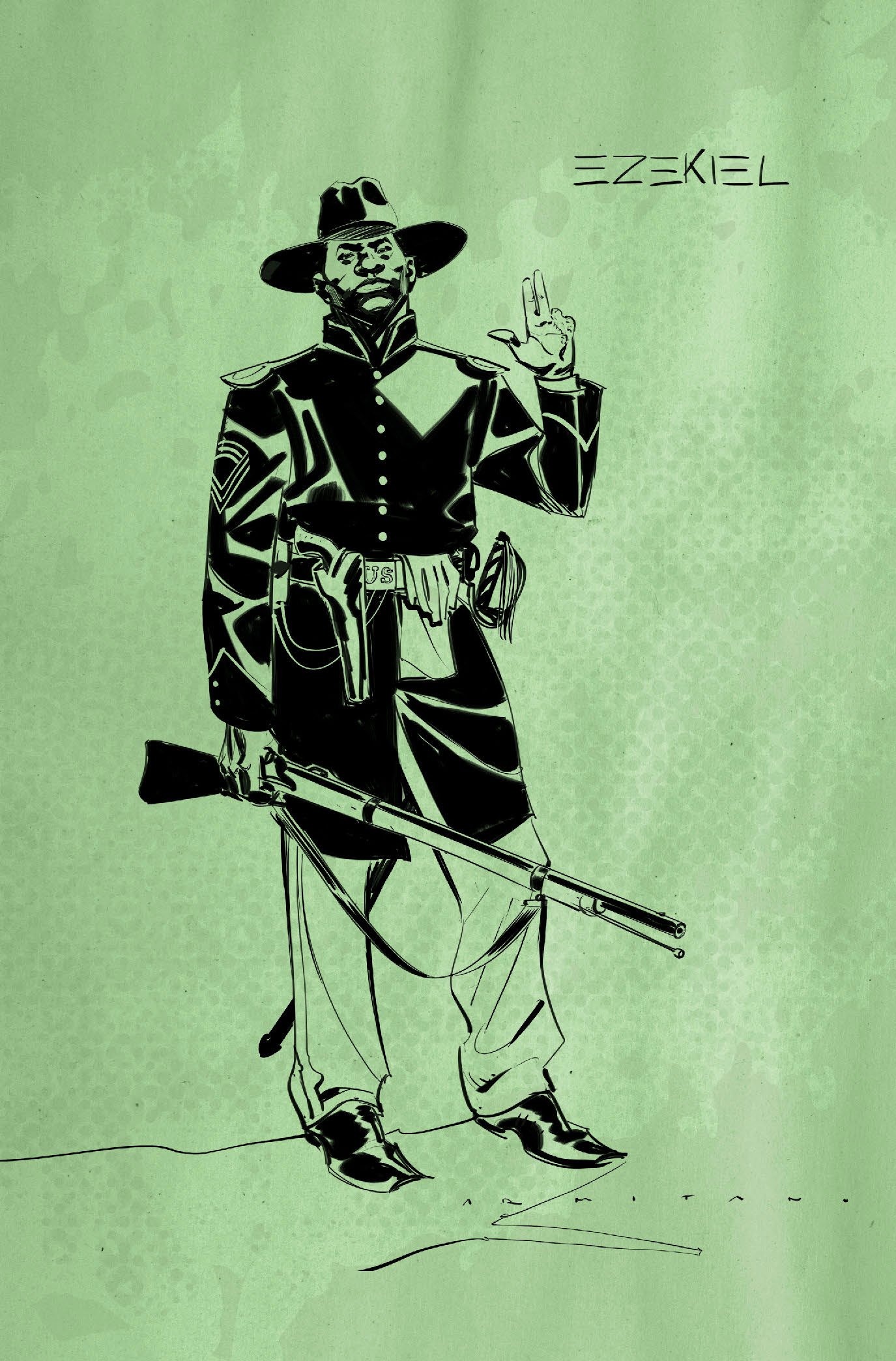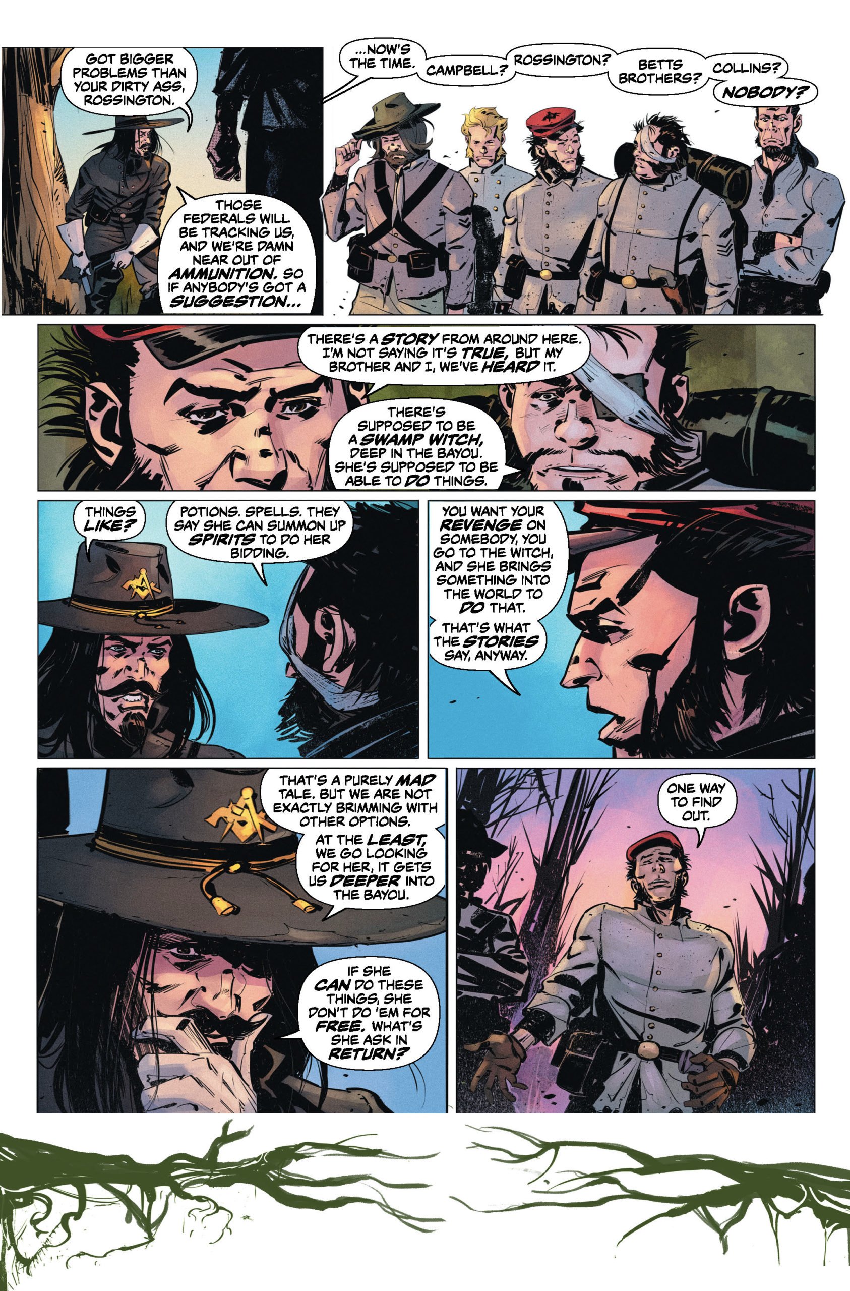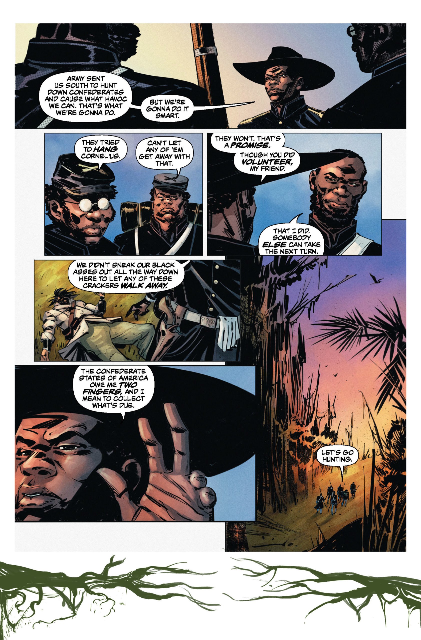 "The idea for Swamp God had been tucked away in a notebook for quite a few years, prompted by an article I read about scattered detachments of Union troops who were essentially off the books at the end of the Civil War, wreaking havoc in the south as guerilla troops. The concept grew from there to what we have now, combining history and the supernatural. Heavy Metal turned out to be a great home for it, particularly by bringing in Paolo Armitano on the art. Now I can't imagine the story in any other artist's hands. He's just a perfect fit."