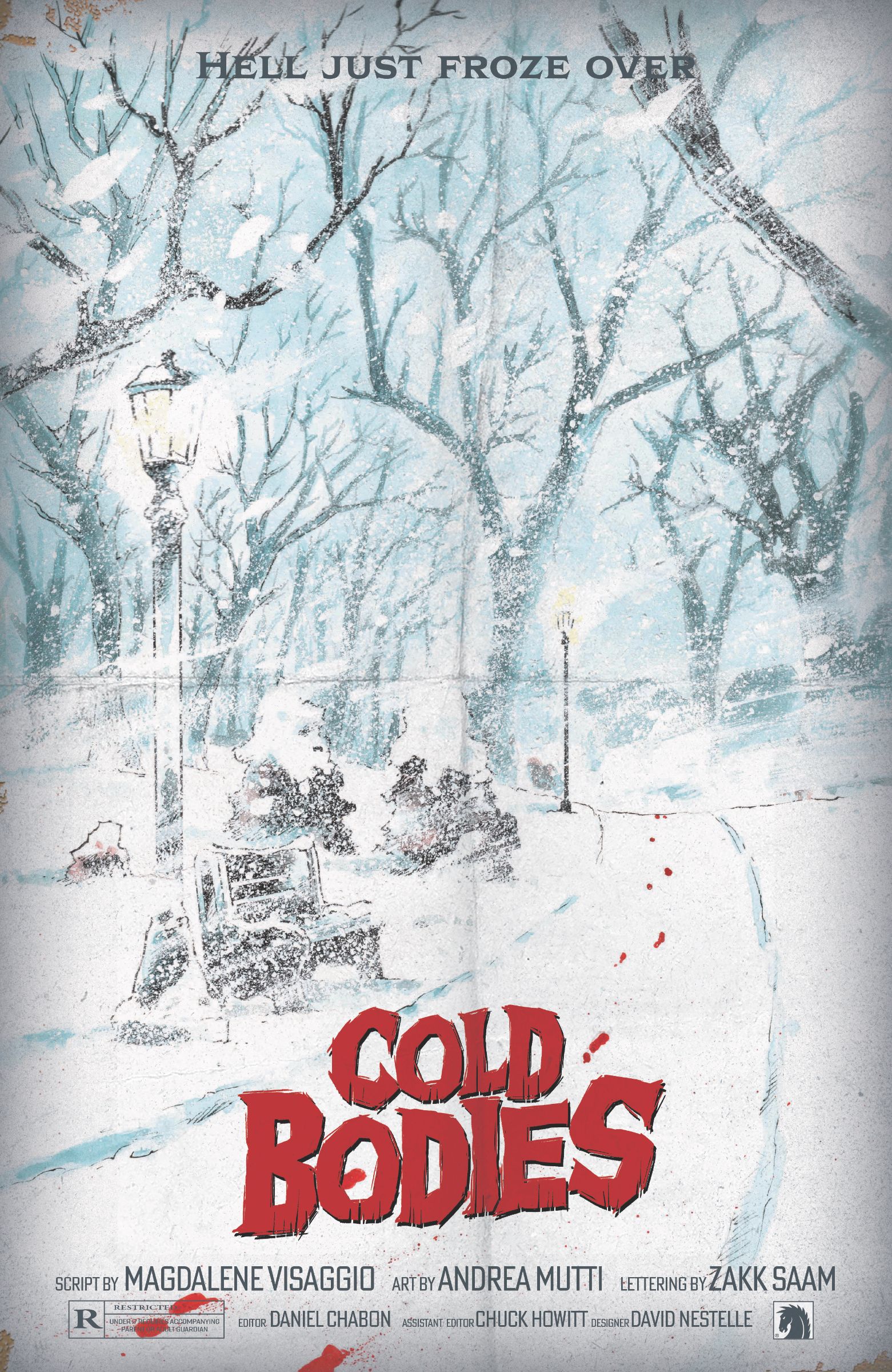 Blending elements of Halloween and Jacob's Ladder within its own creepy and compelling story, writer Magdalene Visaggio and artist Andrea Mutti's new graphic novel Cold Bodies will explore the haunting effects of trauma on the only survivor of the vicious Winter Man massacre, and we're thrilled (and chilled) to exclusively reveal the graphic novel's release details and cover art that's reminiscent of an ’80s horror movie poster.