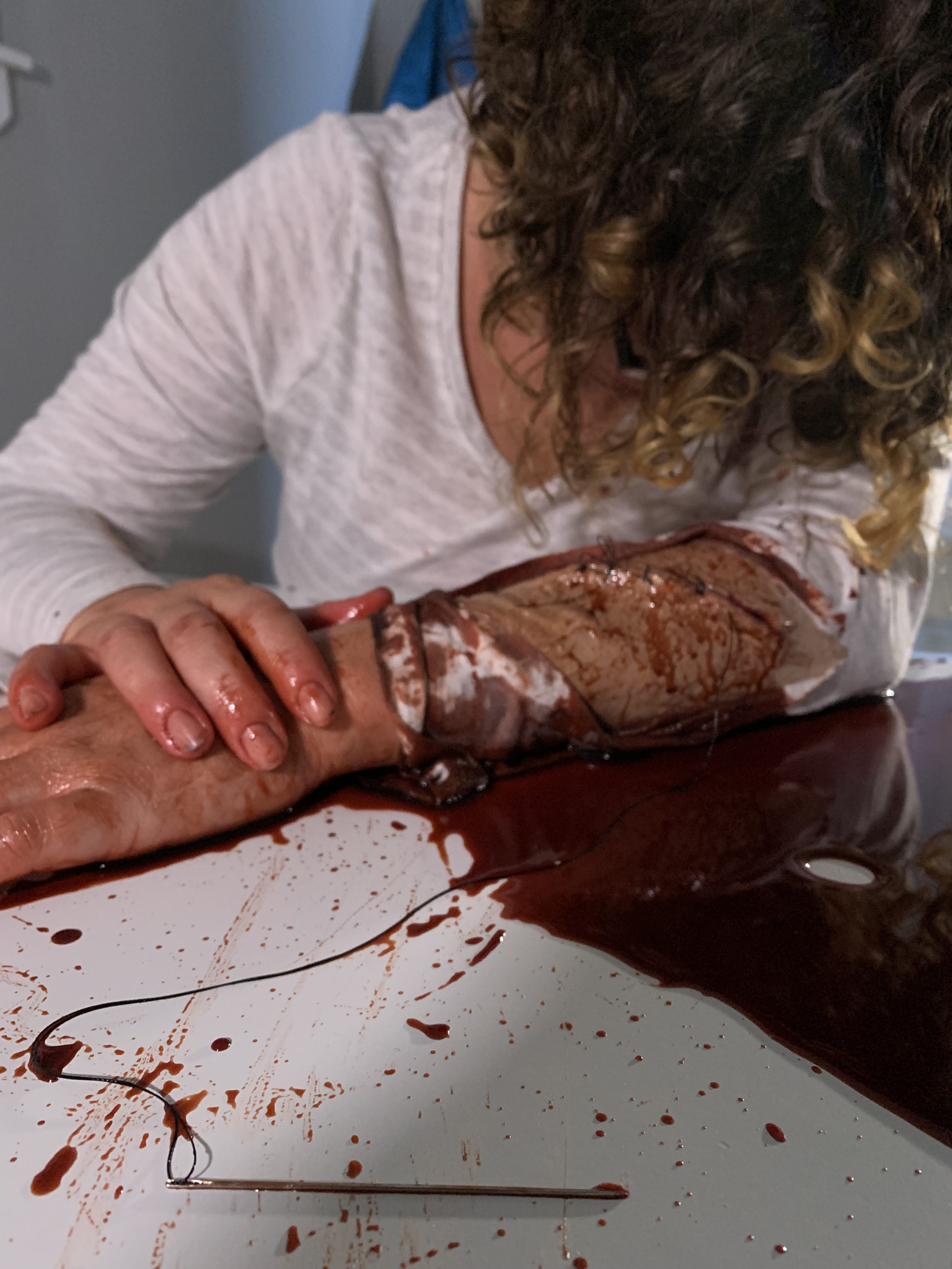 Stitches is the latest film from onStream Productions - writer/director Colin MacDonald and actress/special effects creator Nicole Barron, in collaboration with composer Jerry Smith. Following their award-winning short Hangail, the trio pushed themselves to make viewers' skin crawl with an even more visceral effort.