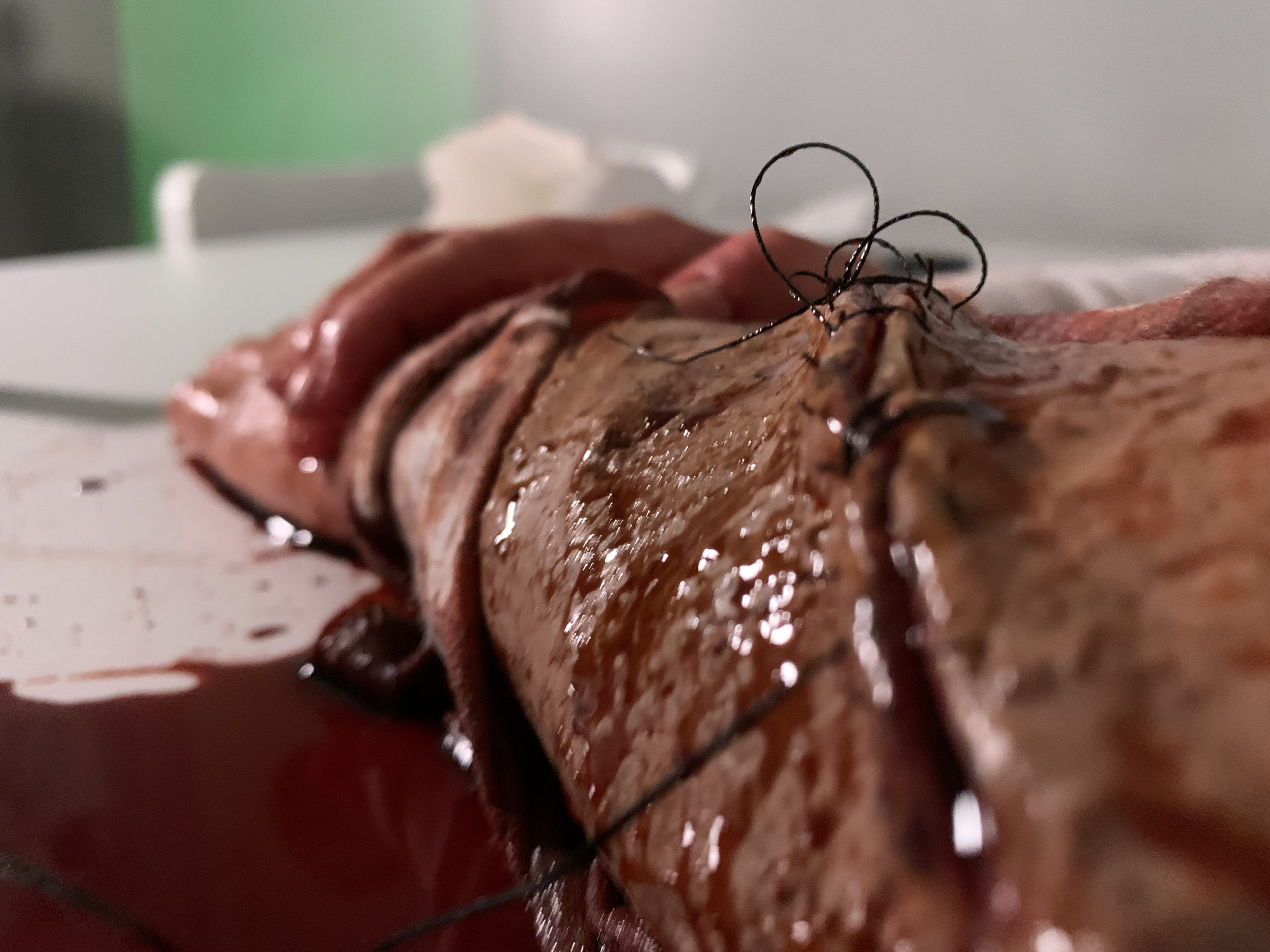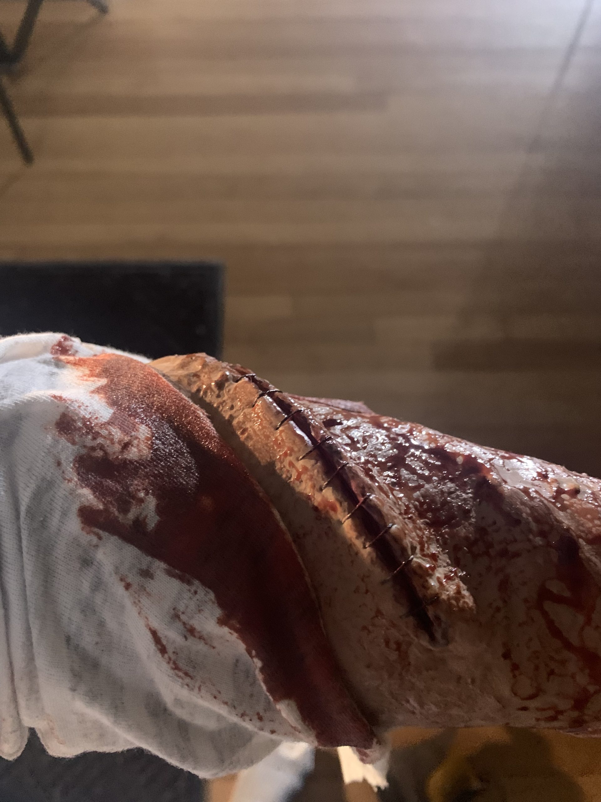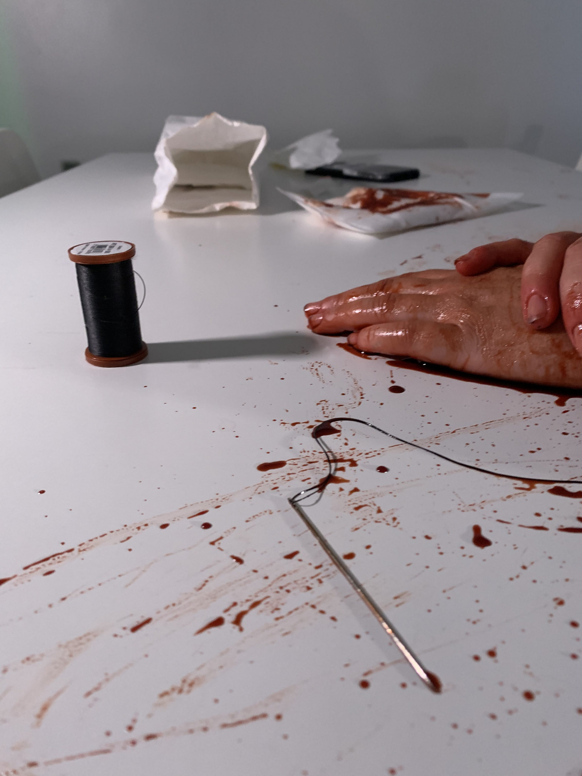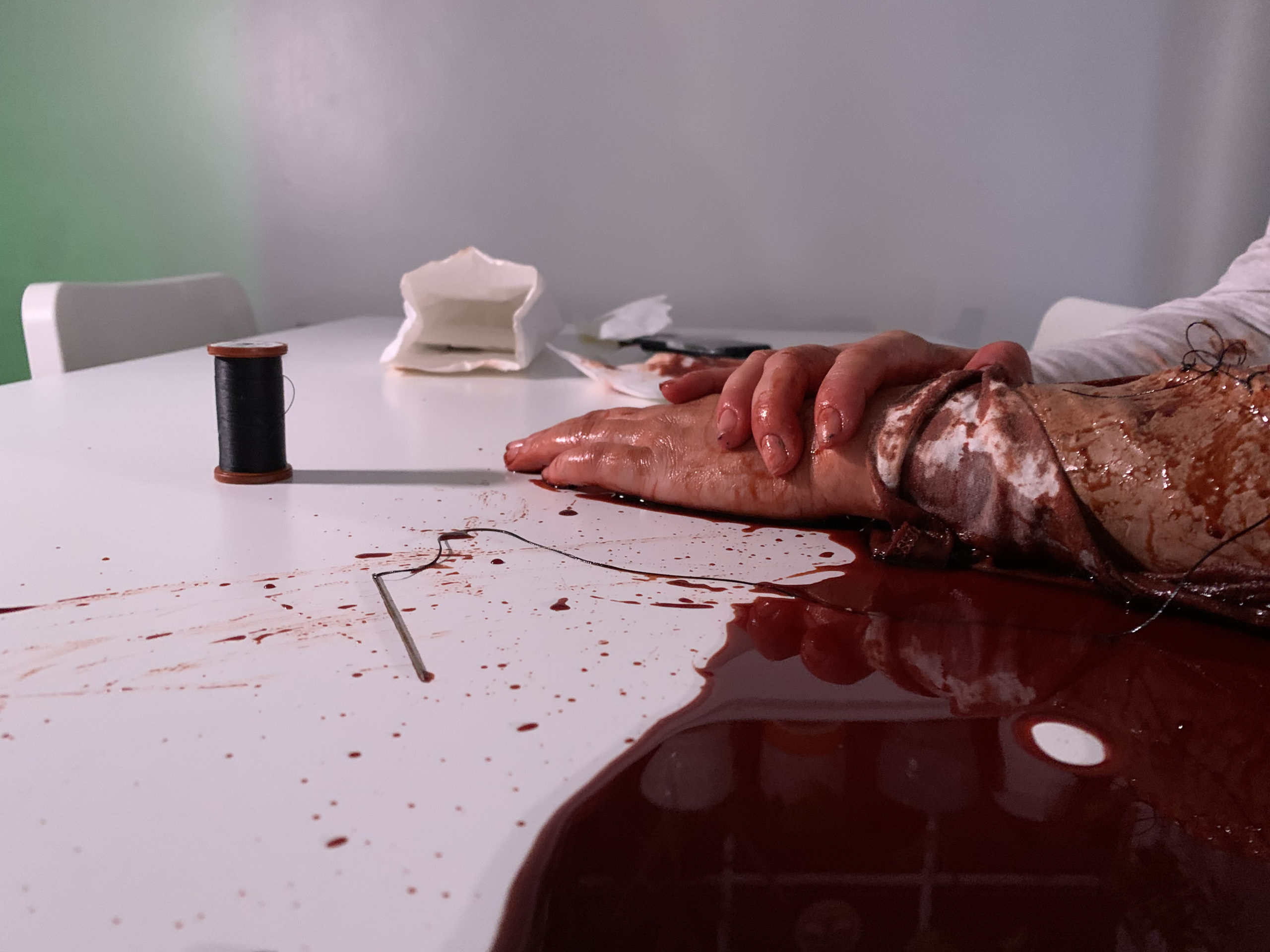 "The thought of having thin, delicate threads holding my flesh together has always disturbed me," shudders MacDonald. "Making Stitches allowed me to amplify that and explore the most nightmarish of scenarios."