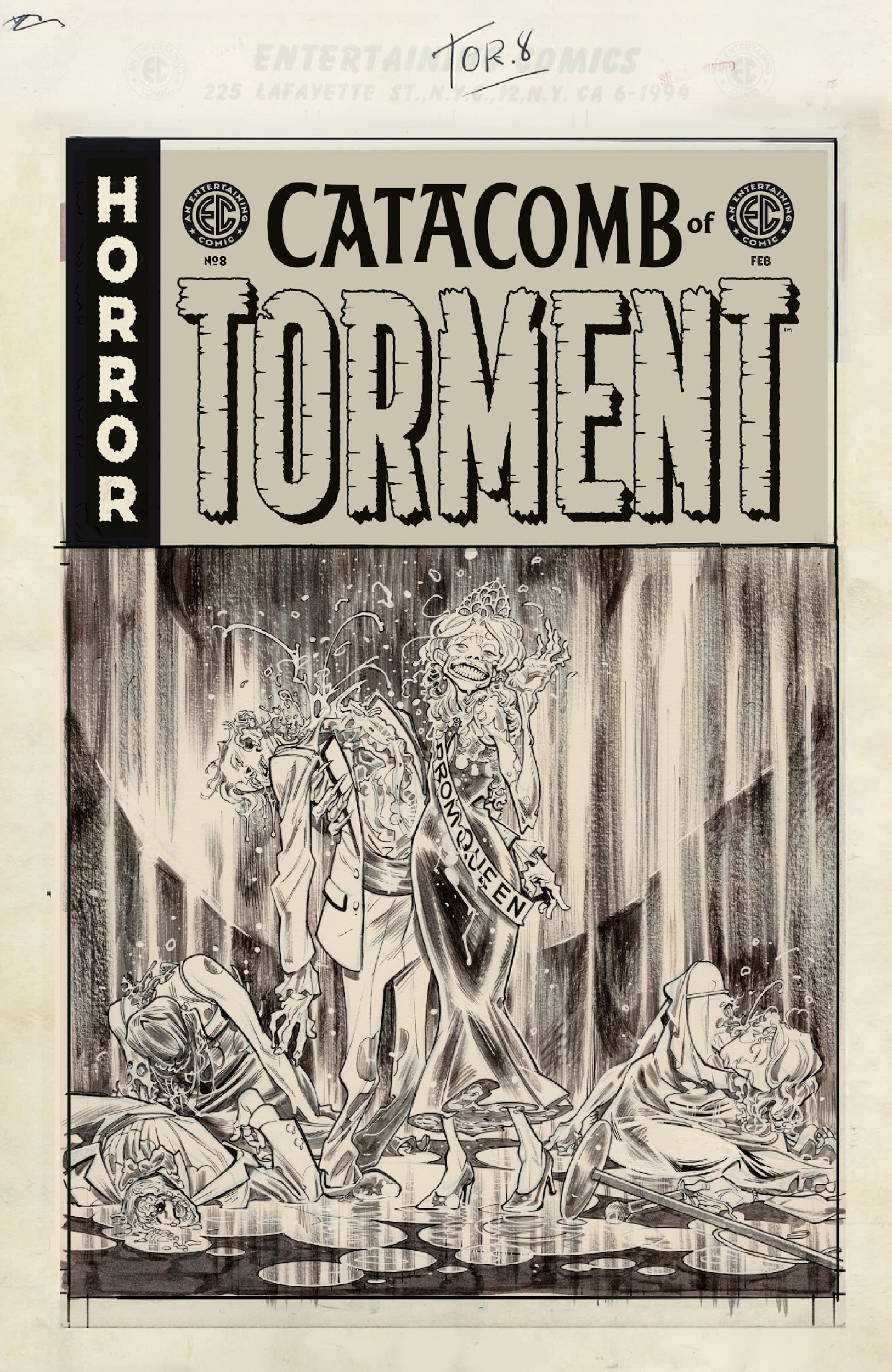 After delivering thrills and chills all year long on the paneled page, EC Comics and Oni Press will still have plenty of frightful fun for readers to lay their eyes upon in the dawn of the new year, and as a terrifying treat for Daily Dead readers, we have a look at the eye-catching (and eye-gouging) covers and deadly details for Cruel Universe 2 #7, the Valentine's Day special Tortured Hearts #1, and the blood-splattered Catacomb of Torment #8!