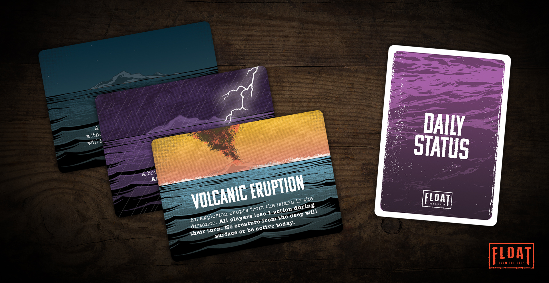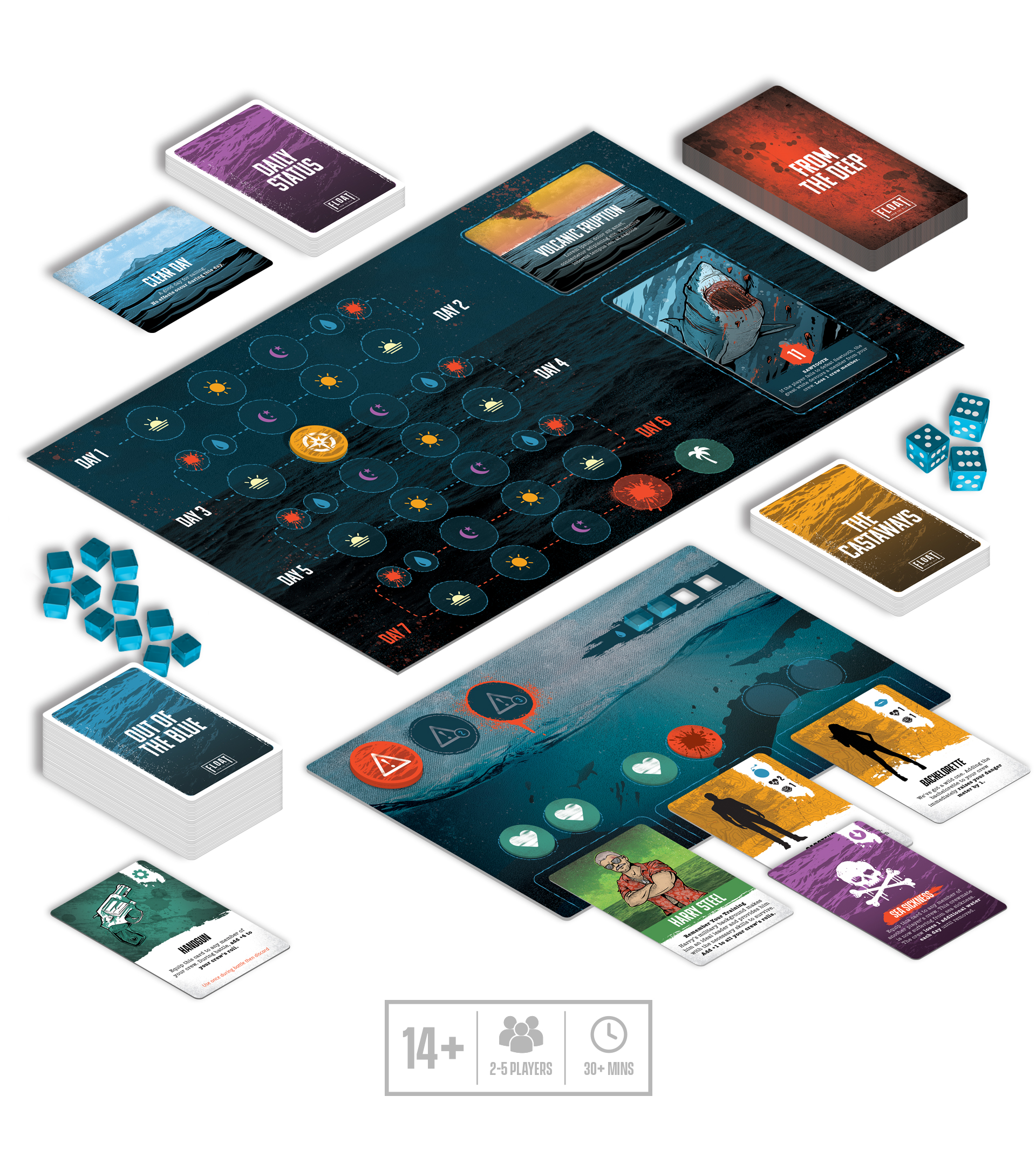 FLOAT: From the Deep, is a fast-paced tabletop game from Bright Light, where 2-5 players find themselves lost at sea, battling ferocious creatures from below and attempting to outsmart and outlast their fellow players. With only 7 days to make it to the island in the foggy distance, it’s sink, swim, or be devoured by the next monster from the deep.