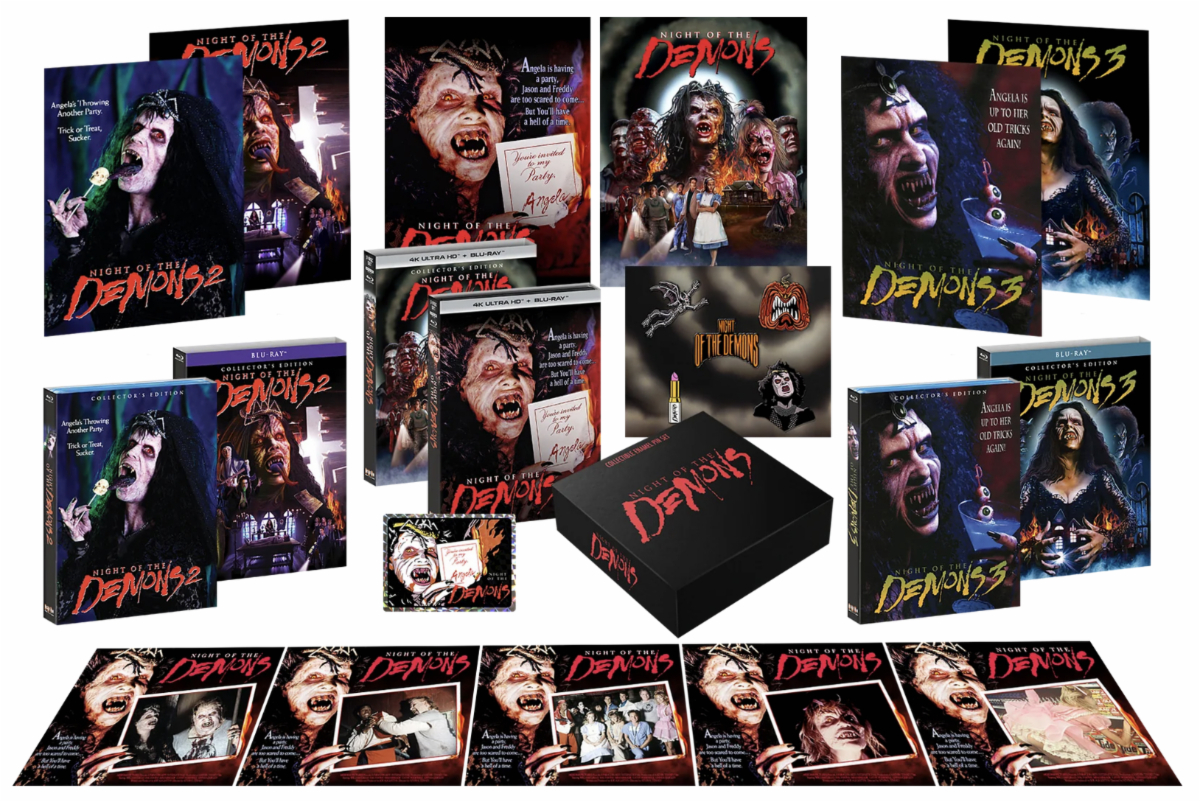 Press Release: Just in time for Halloween, horror enthusiasts and collectors can experience bone-chilling suspense, ancient dark rituals, and terrifying horror like never before when SCREAM FACTORY™ unleashes three creepy supernatural cult hits on October 3, 2023 with NIGHT OF THE DEMONS Collector’s Edition in a 4K UHD™+ Blu-ray combo pack, NIGHT OF THE DEMONS 2 Collector’s Edition Blu-ray, and NIGHT OF THE DEMONS 3 Collector’s Edition Blu-ray.