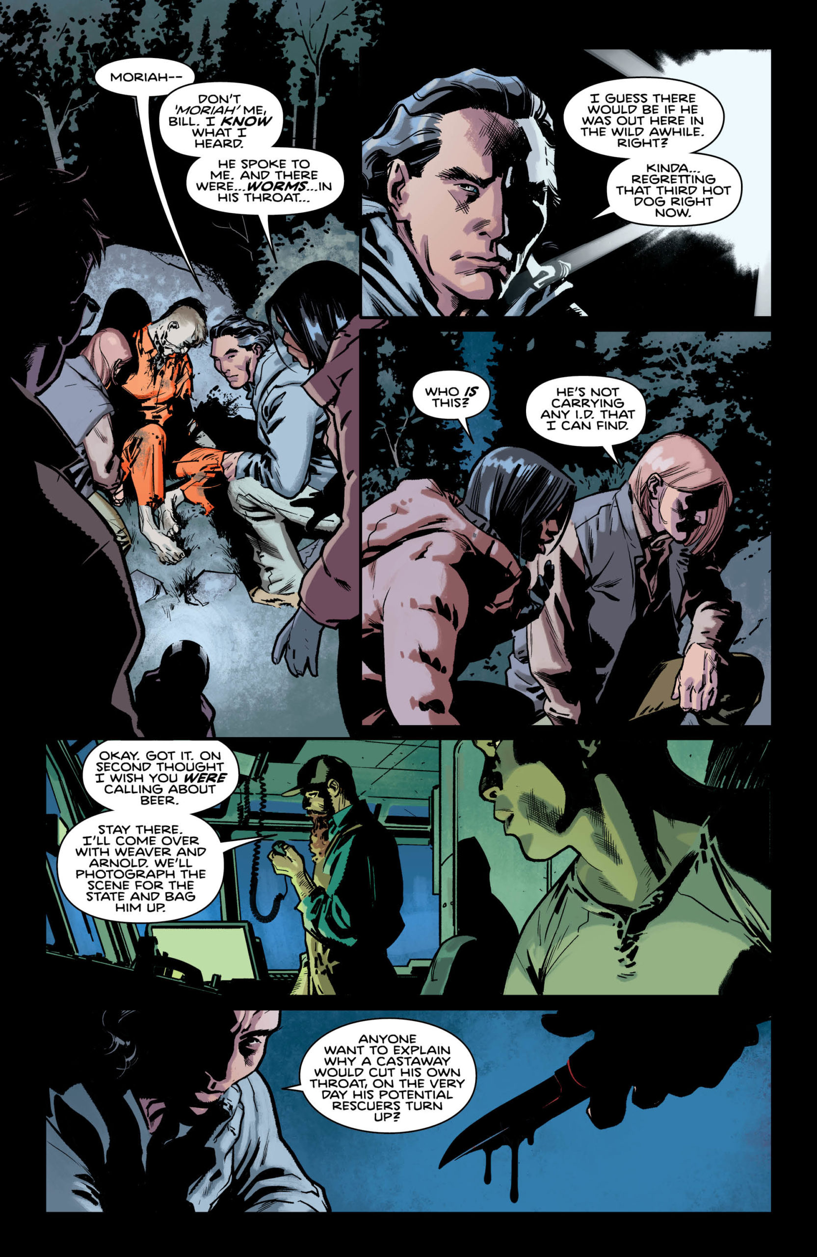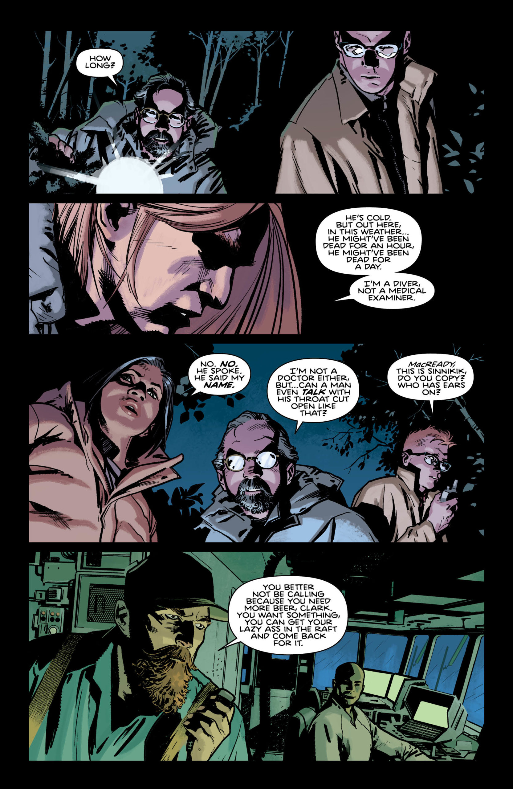 Following the discovery of a dead body, the members of a ship crew discuss their foreboding find (and whether or not the deceased shared some words with a member of their crew) in our exclusive preview pages from Plunge #2.