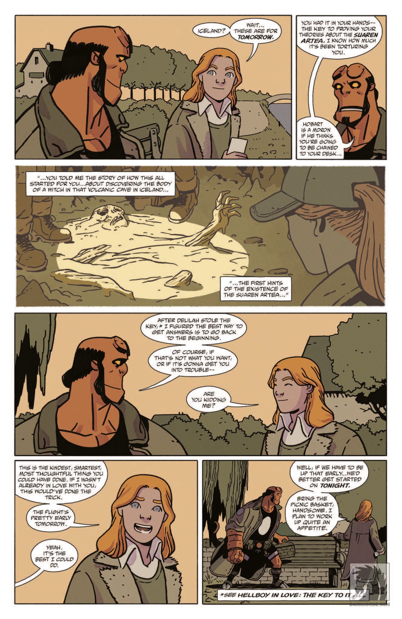 Hellboy in Love: The Art of Fire #1: "Hellboy and archaeologist Anastasia Bransfield trek to Iceland for evidence of a seemingly impossible network of occultists, but a fresh dig site holds answers that come at a steep—and risky—price."