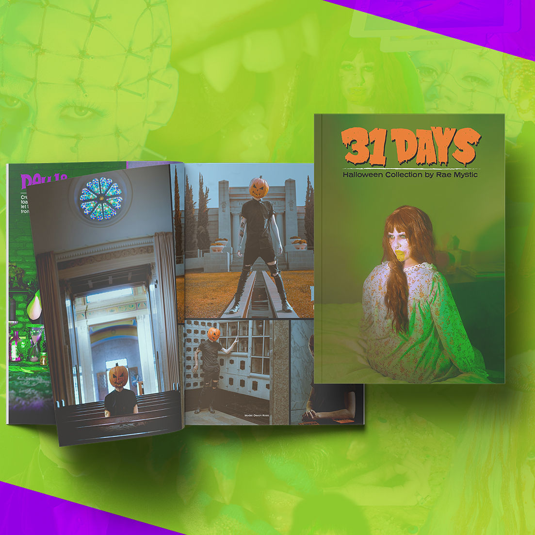 INTRODUCING ‘31 DAYS’ A COLLECTION OF HALLOWEEN INSPIRED PHOTO SETS BY RAE MYSTIC, ONE FOR EACH DAY OF THE SPOOKIEST MONTH OF THE YEAR: "What began as a photography challenge to capture 31 different halloween or horror-themed looks throughout the month of October in 2018 has now transformed into ‘31 DAYS,’ a physical collection of horror and spooky themed photography from renowned photographer, Rae Mystic.